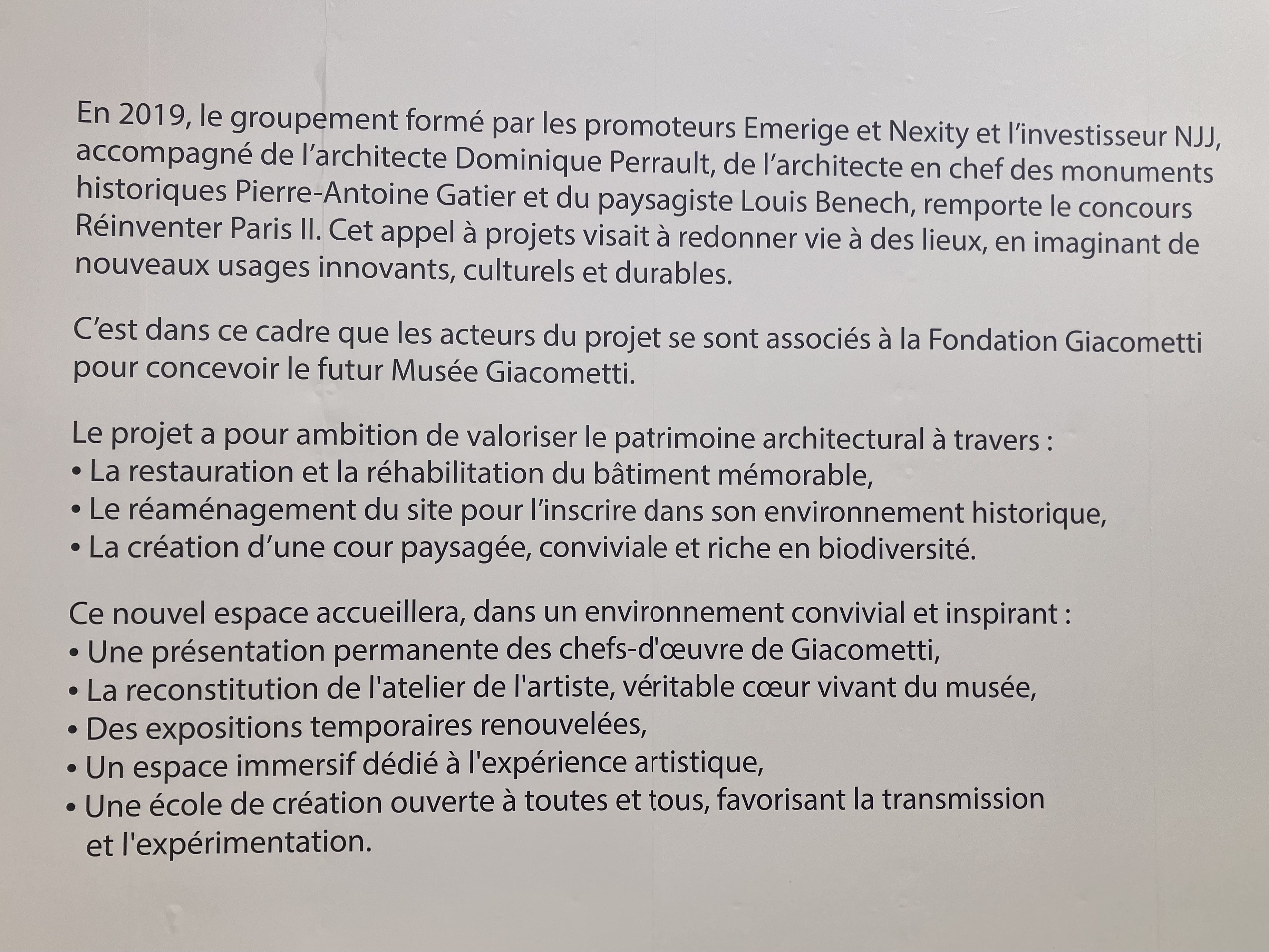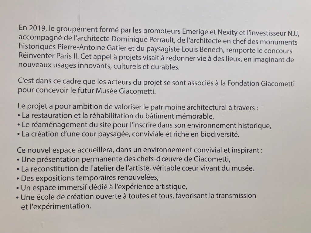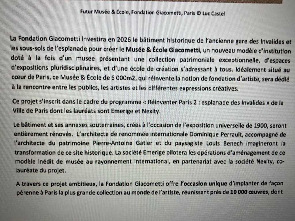 Ce lieu bien choisi – à deux pas du Grand Palais- et du musée Rodin- d’une grande surface de 6000 m2 -qui laissera un hommage permanent à Giacometti.