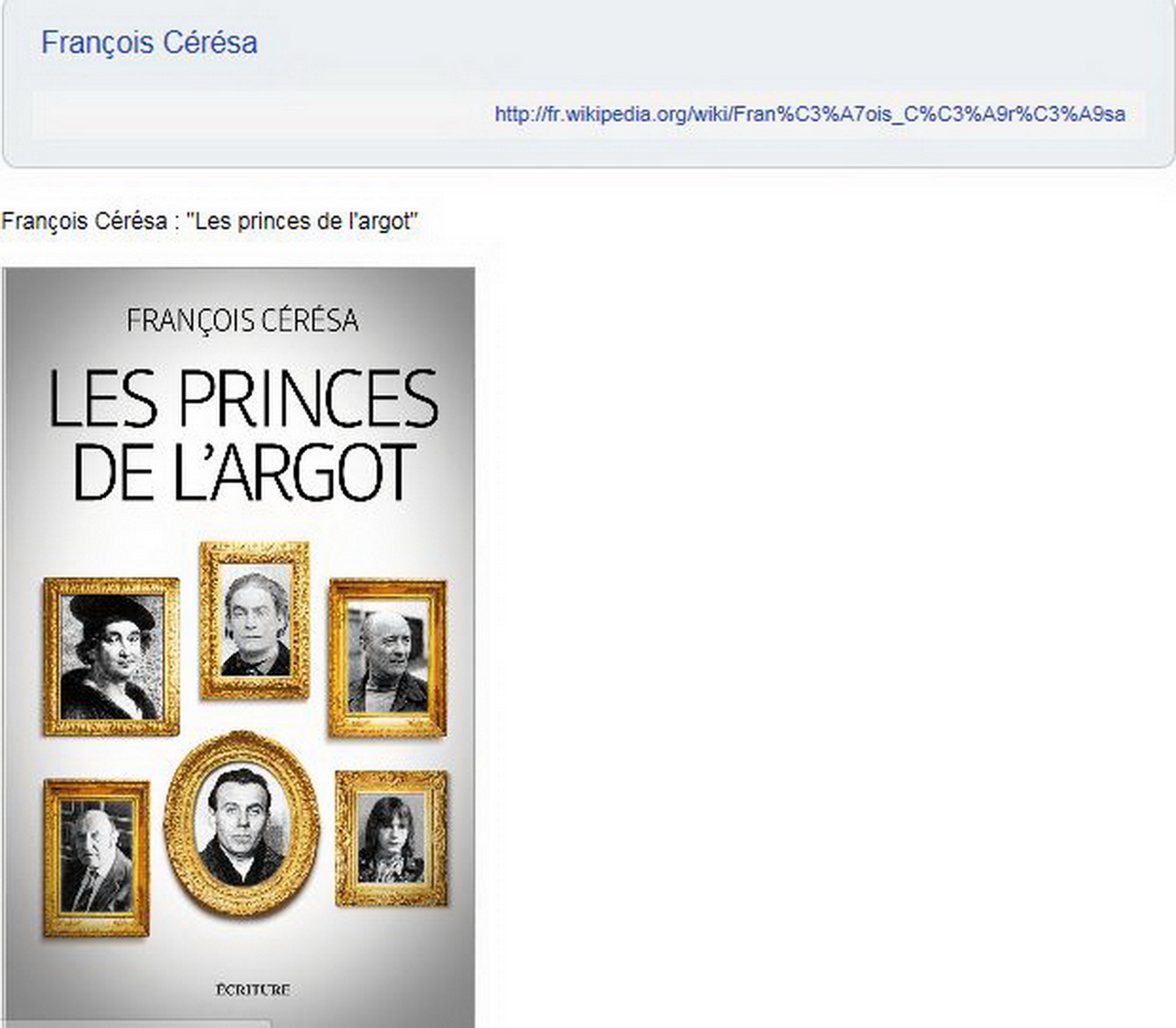 et de Bernard BOIS. Autres Sujets du jour: « Les princes de l’argot » – de François CERESA et Véronique Gerard-Powell l’exposition VELAZQUEZ (au Grand Palais)