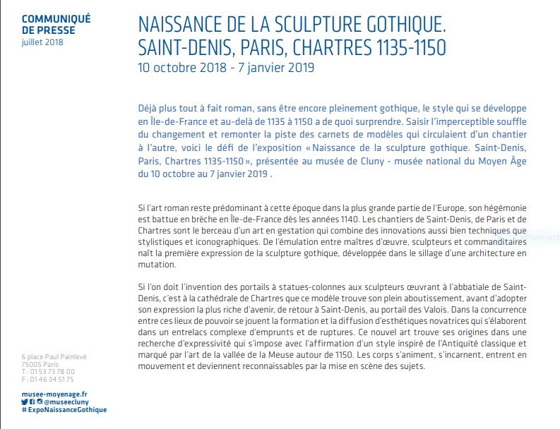 Musée de Cluny – derniers jours -21 Janvier 2019 » Naissance de la sculpture gothique » Saint-Denis Paris Chartres 1135-1150