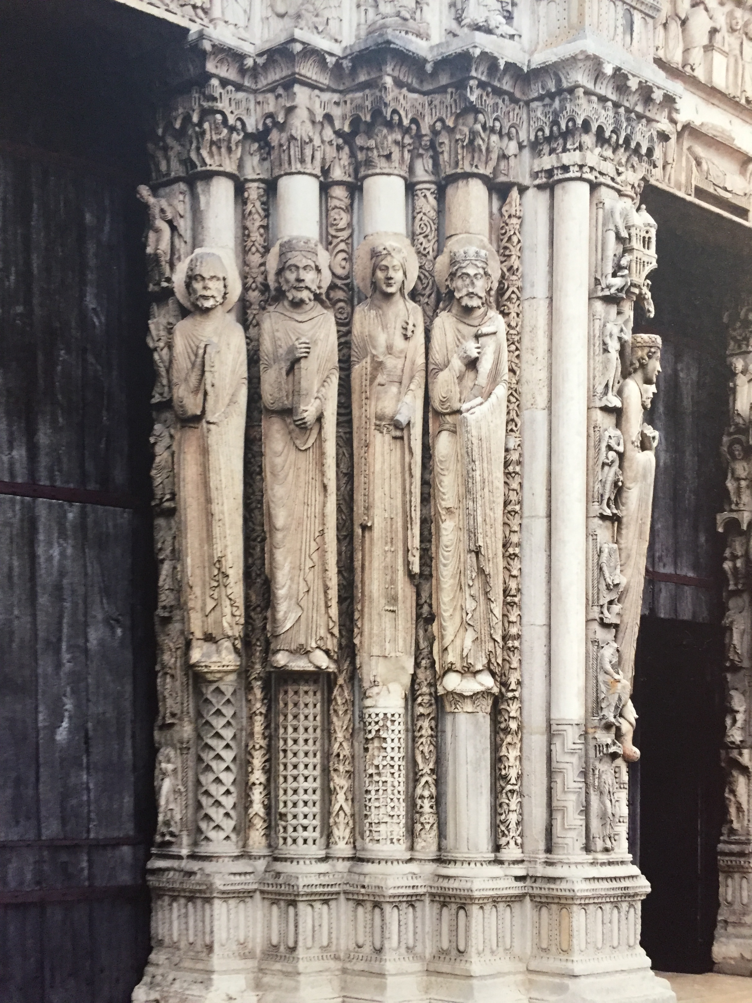 des pièces d’une grande rareté (les statues-colonnes du portail de Chartres) et la statue-colonne:roi de l’Ancien Testament (Saint-Denis-cloître de l’abbaye vers 1145-(provenance The Metropolitan Museum New York)