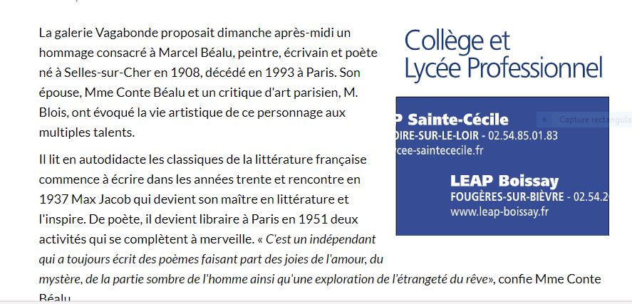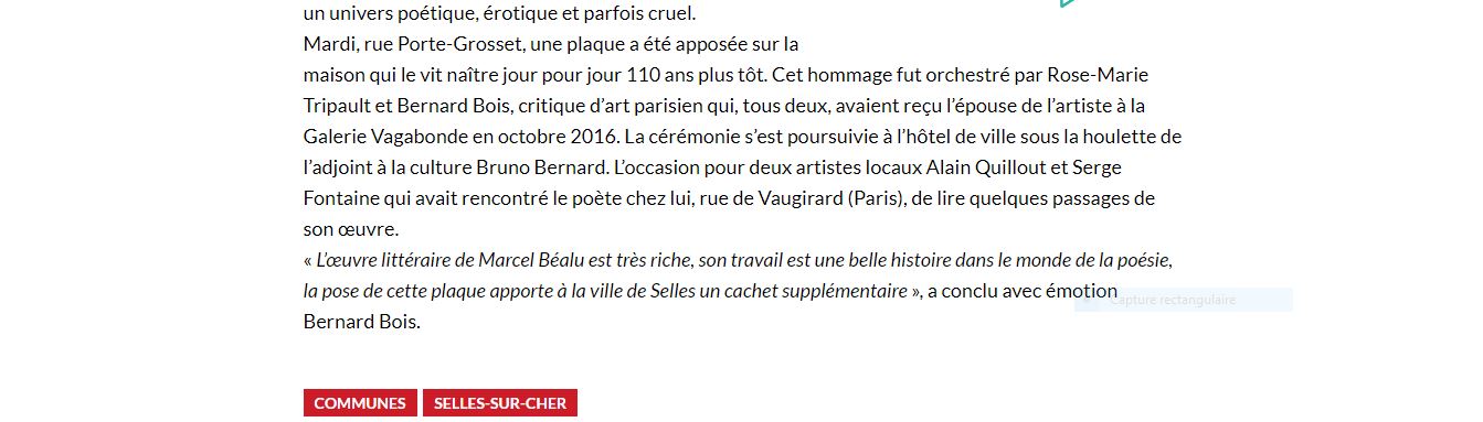 suite au projet de la conférence sur Marcel Béalu initiative de Rose Tripault,