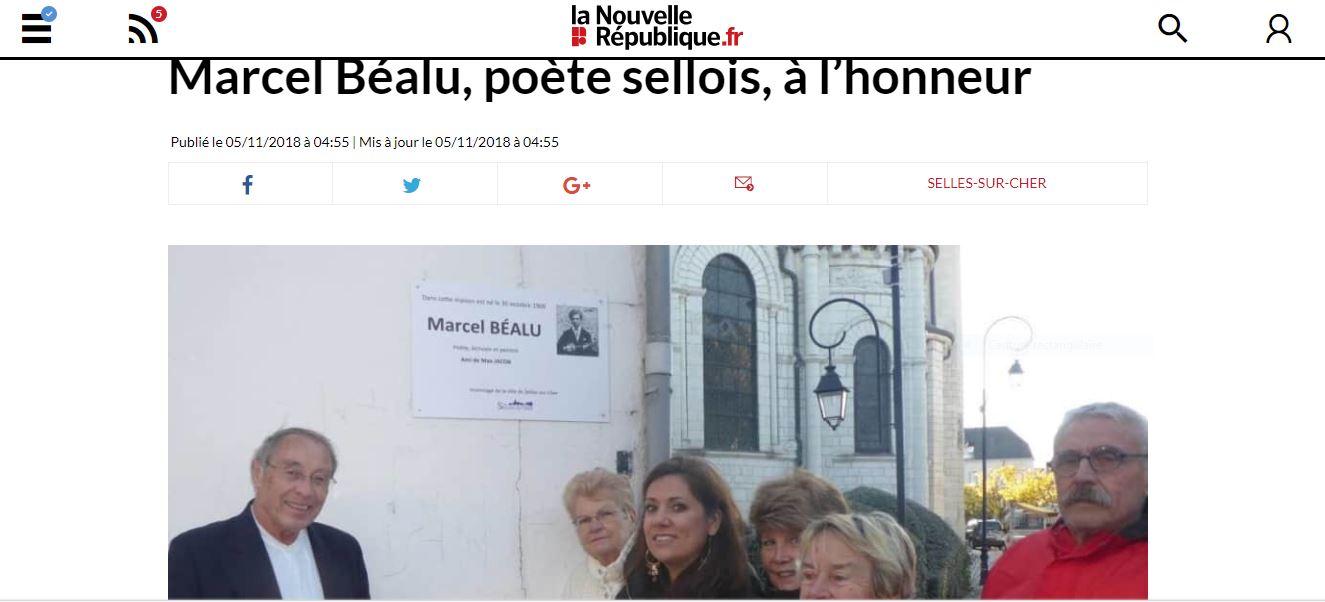 Marcel Béalu ( 110 ans le 30 Octobre 2018) une commémoration à Selles-sur-cher