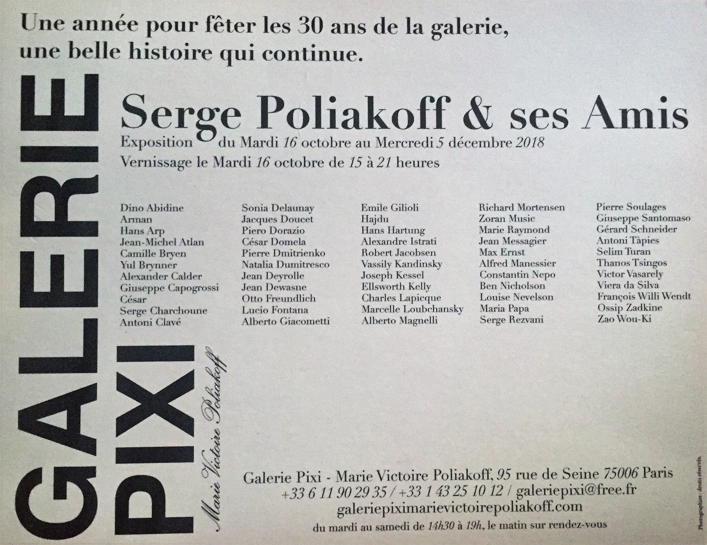 Galerie Pixi-Marie Victoire POLIAKOFF « Serge Poliakoff & ses amis » 16 Octobre au 5 Décembre 2018