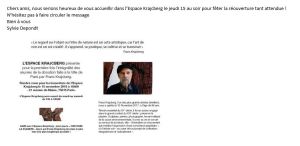 Un réouverture attendue – la totalité des œuvres en dépôt sous le contrôle de la mairie de Paris et aussi des œuvres contenues dans l’atelier et jamais montrées au public – deux films sont un beau complément pour l’exposition dans ce lieu rénové.Une nouvelle vie pour l’espace Krajcberg.
