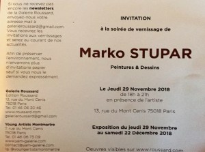 Galerie Roussard exposition Marko Stupar (peintures et dessins) 29 Novembre au 22 Décembre 2018