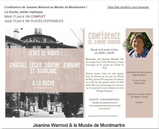 Musée de Montmartre – le film « La bohème de Montmartre à Montparnasse » conférence de Jeanine Warnod le 13 Juin à 19h00