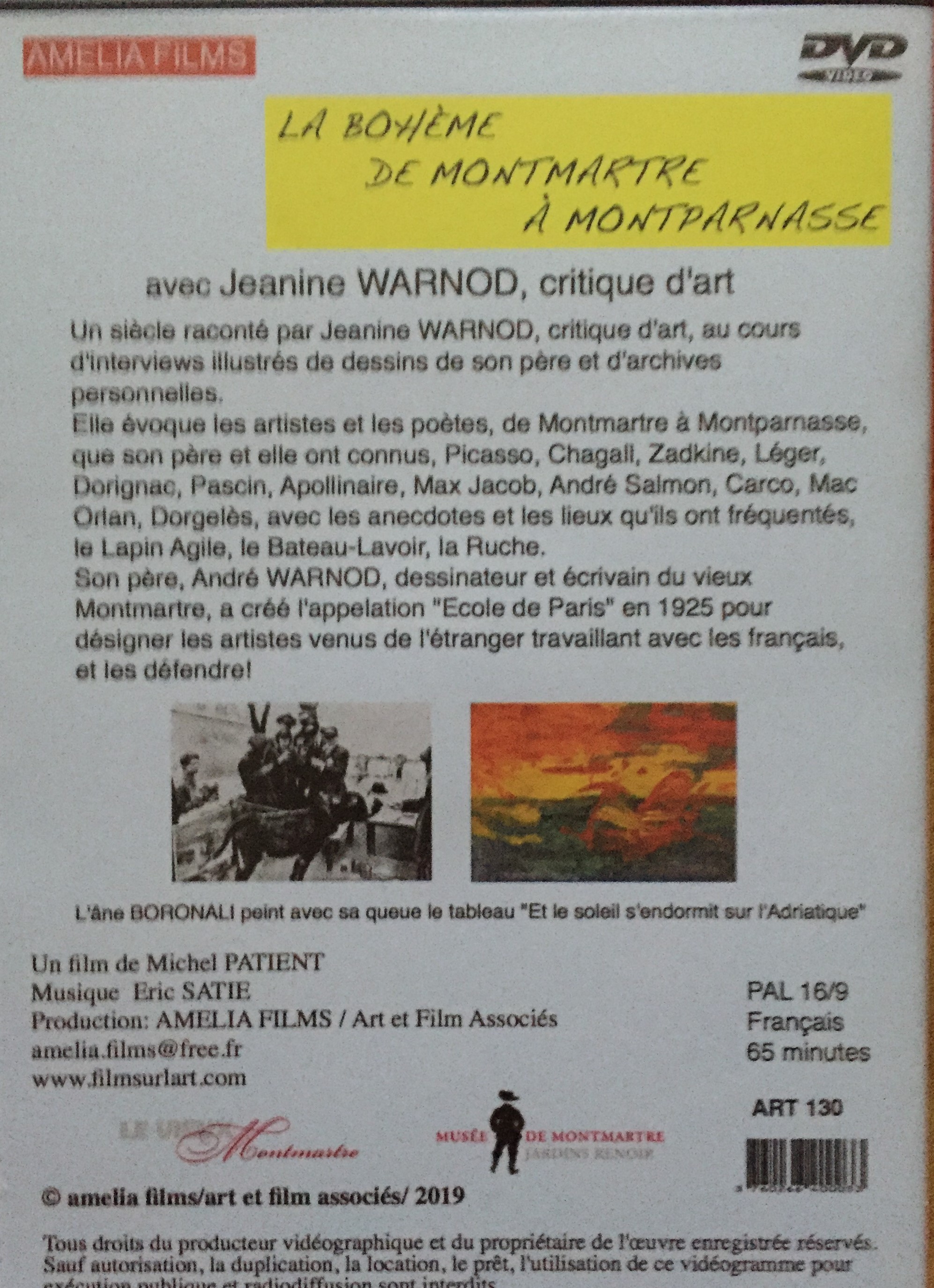 aussi sortie du film consacré à Jeanine Warnod ( « La bohème de Montmartre à Montmarnasse ») un film de 60mn -100 ans de vie artistique à Montmartre-