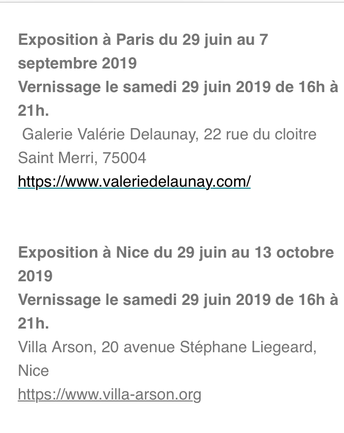 Une jeune artiste prometteuse et déjà bien reconnue-actuellement en résidence à Salvador de Bahia-cette année nominée Bourse révélation Emerige-en 2016 chevalier des arts et des lettres.