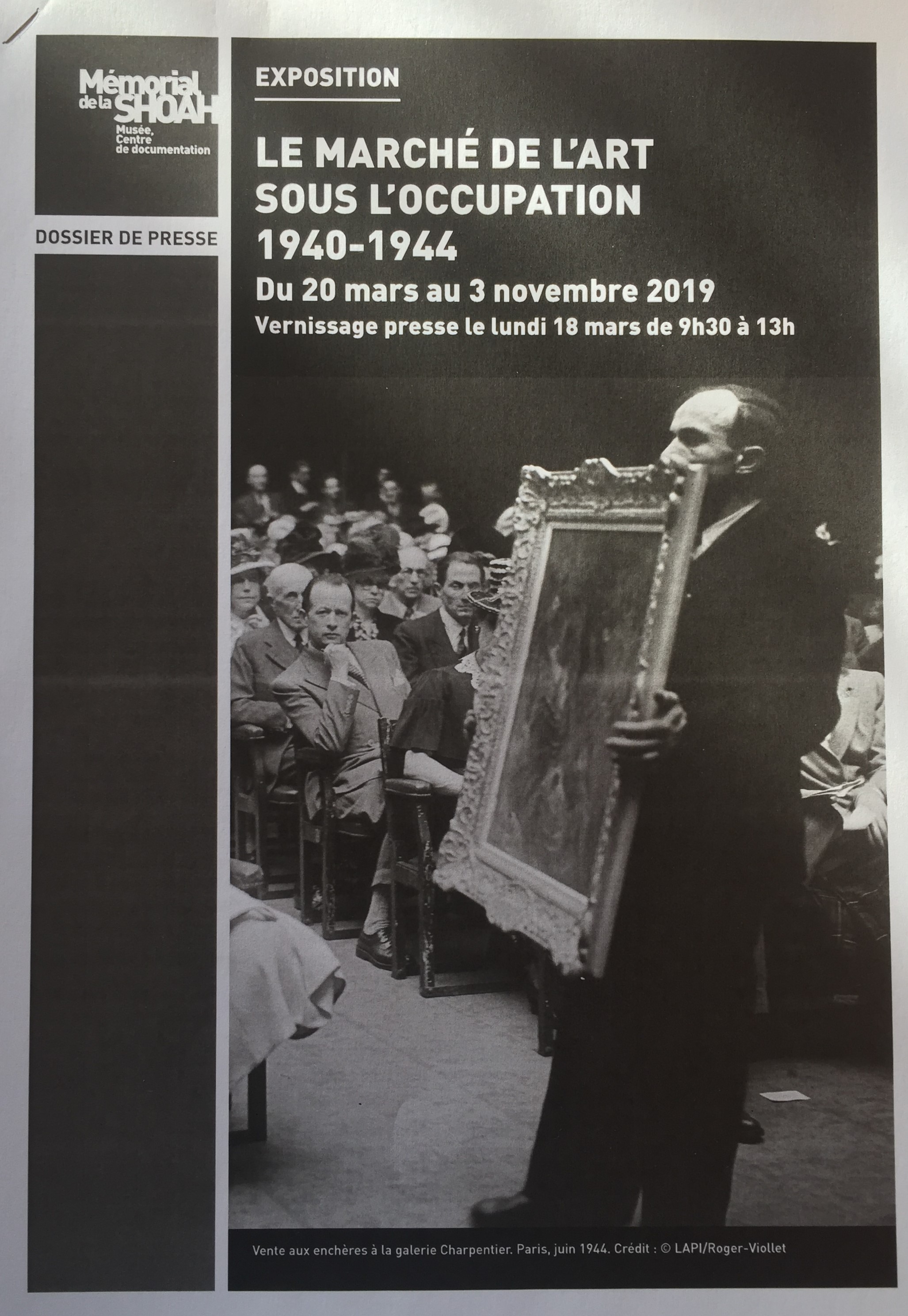 EXPOSITION « Le marché de l’Art sous l’occupation » jusqu’au 3 Novembre 2019