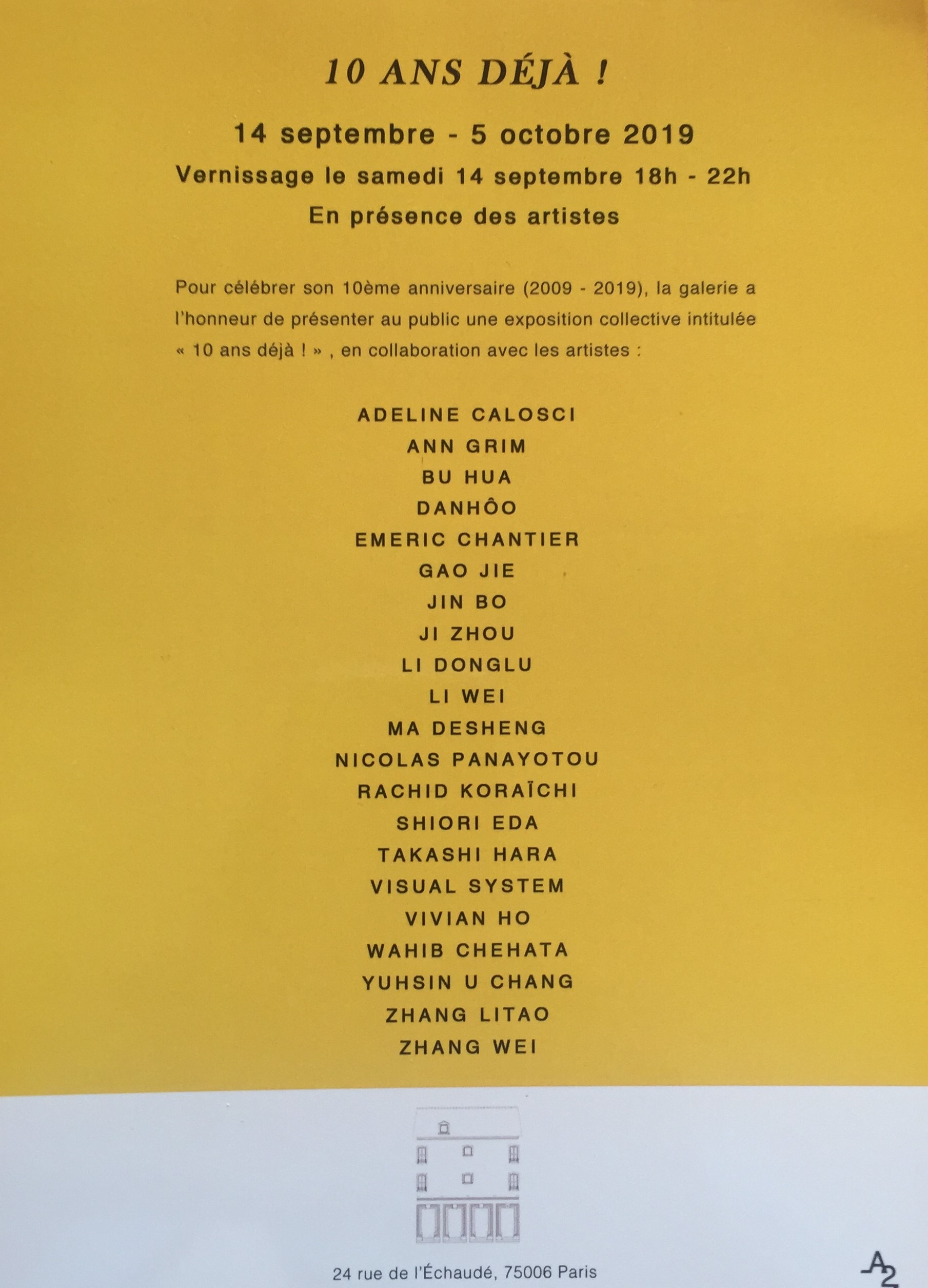 This entry was posted on septembre 6, 2019 at 8:00 and is filed under art contemporain, galeries. You can subscribe via RSS 2.0 feed to this post's comments. Both comments and pings are currently closed.