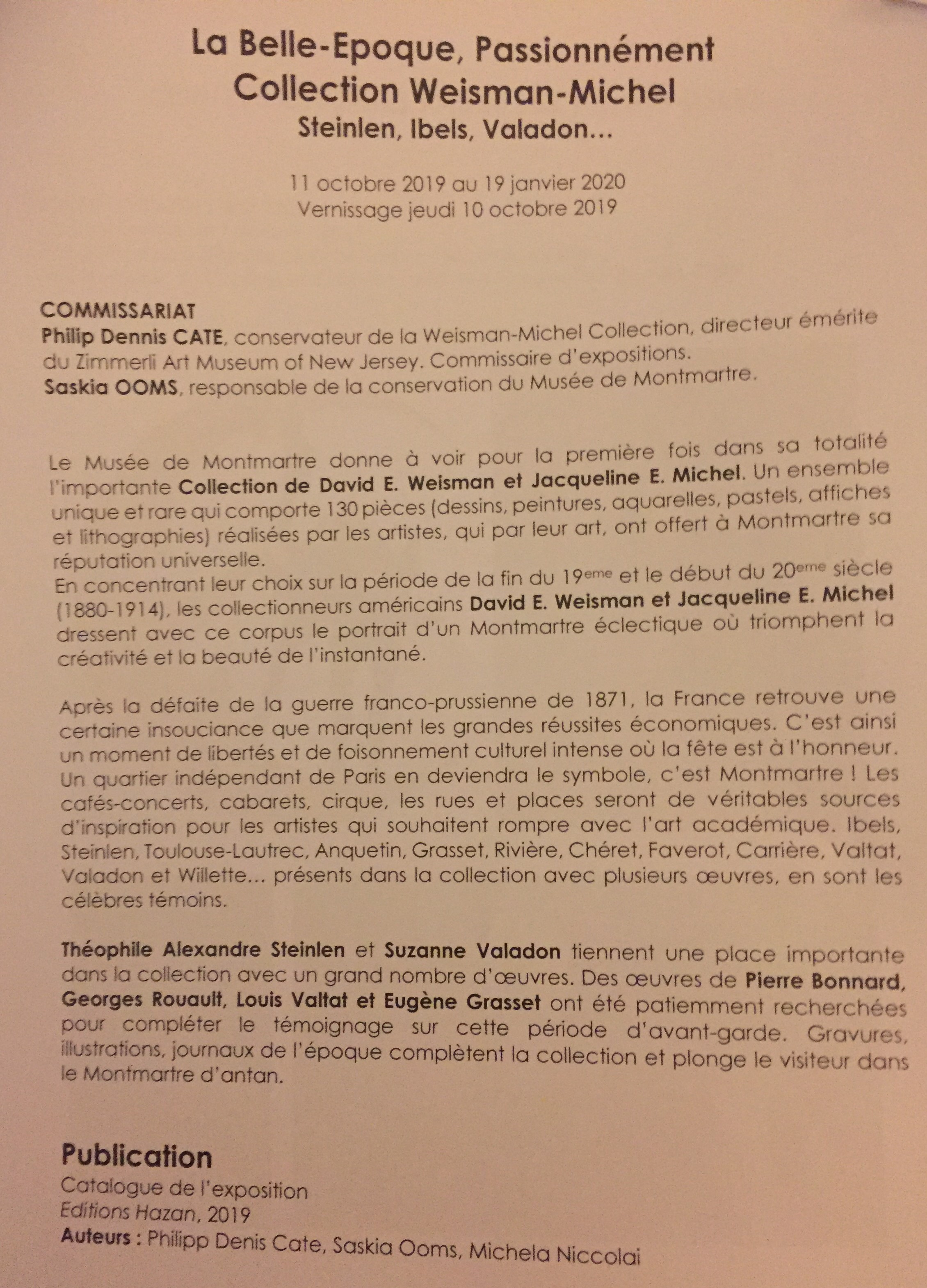 Musée de Montmartre – la prochaine exposition : La belle époque Passionnément -collection Weisman-Michel (Steilen Ibels Valadon) 11 Octobre au 19 Janvier 2020