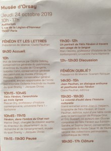 Ce jour colloque 2me partie sur Fénéon au Musée d’Orsay.