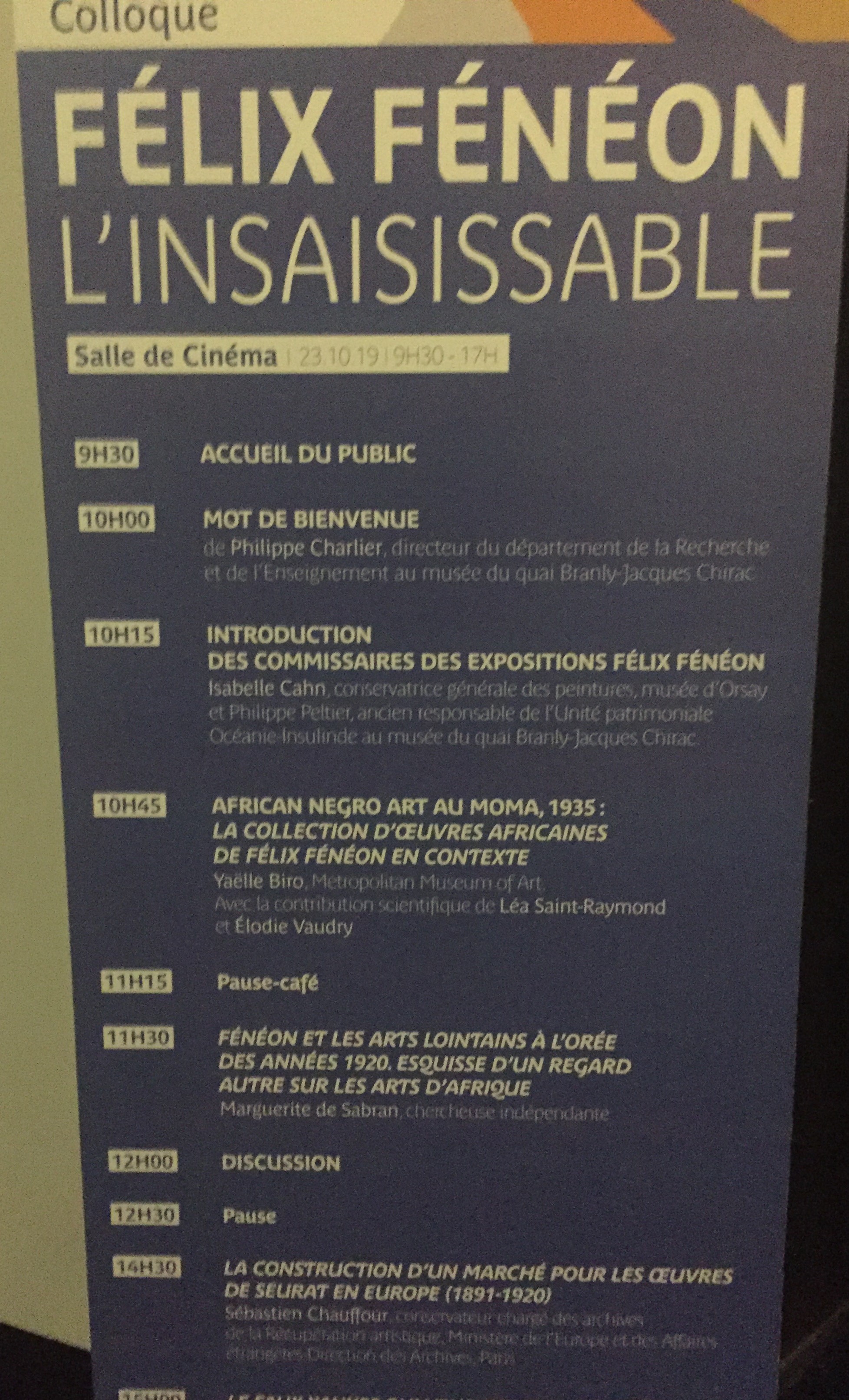 Colloque ce jour au Musée du quai Branly Jacques Chirac « Félix Fénéon l’insaisissable » le 23 Octobre 2019