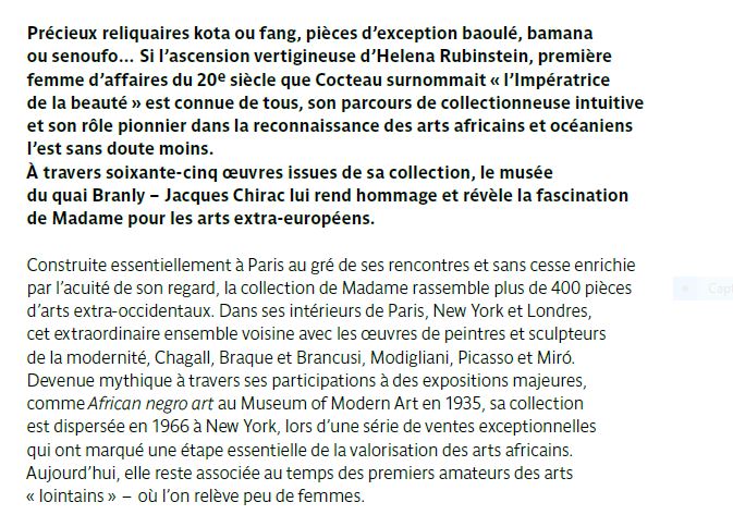 Musée du Quai BRANLY Jacques Chirac « Helena Rubinstein » la collection de Madame