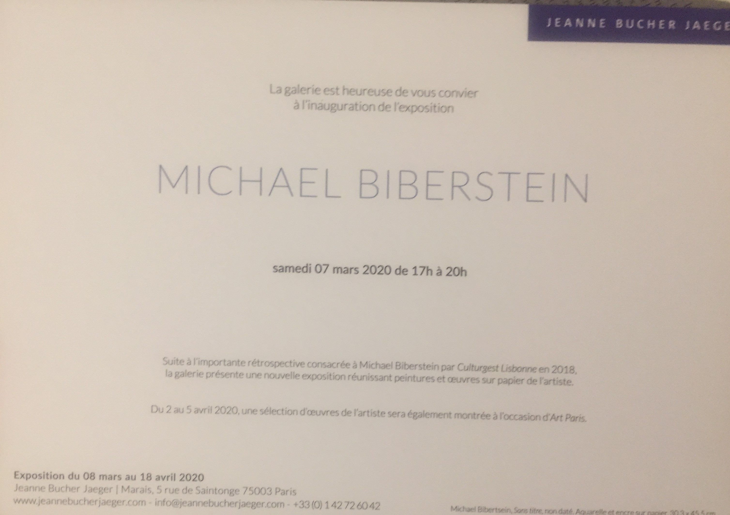 Galerie Jeanne Bucher Jaeger exposition Michael Biberstein _ 8 Mars au 18 Avril 2020