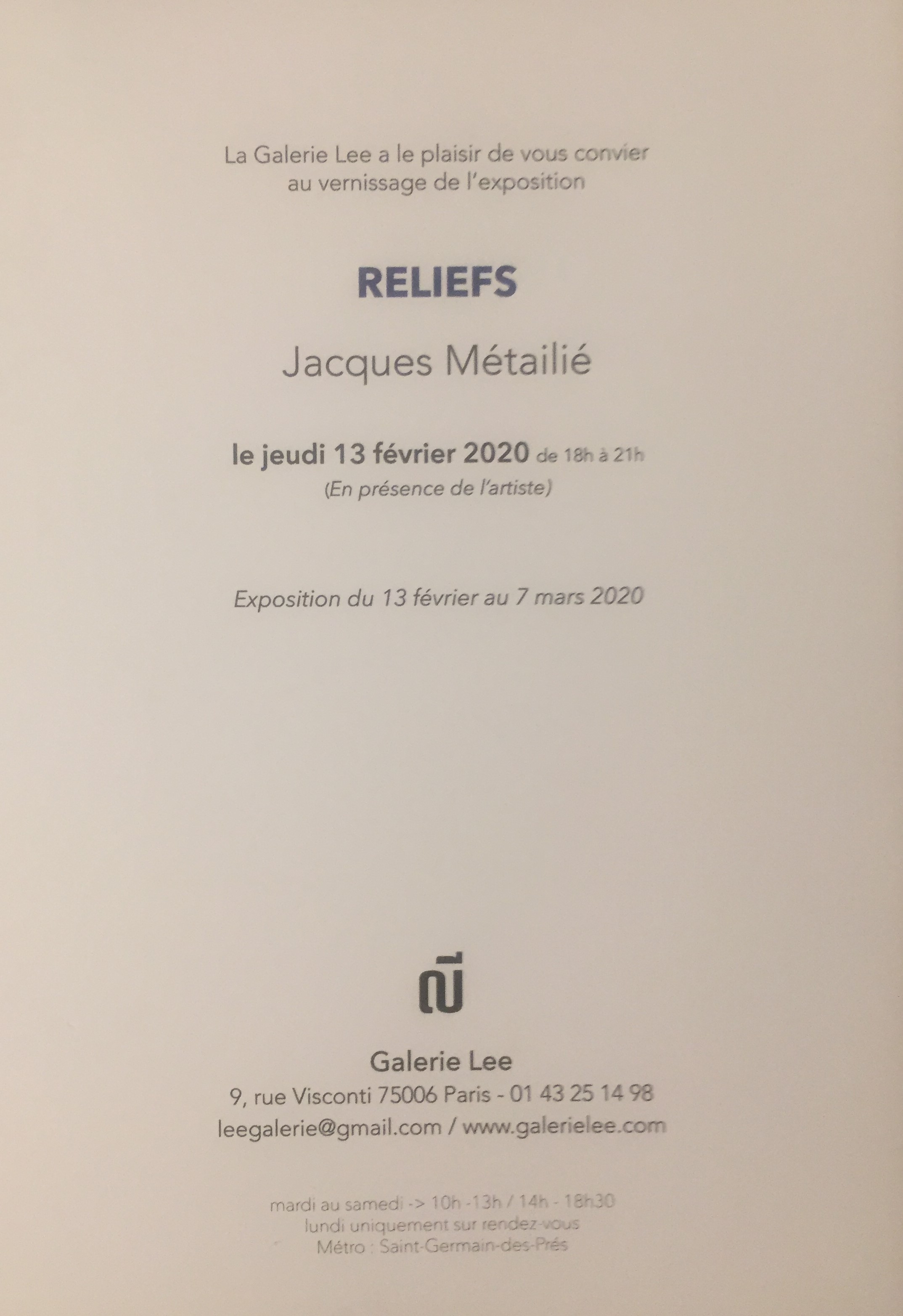 This entry was posted on février 8, 2020 at 11:48 and is filed under art contemporain, galeries. You can subscribe via RSS 2.0 feed to this post's comments. Both comments and pings are currently closed.
