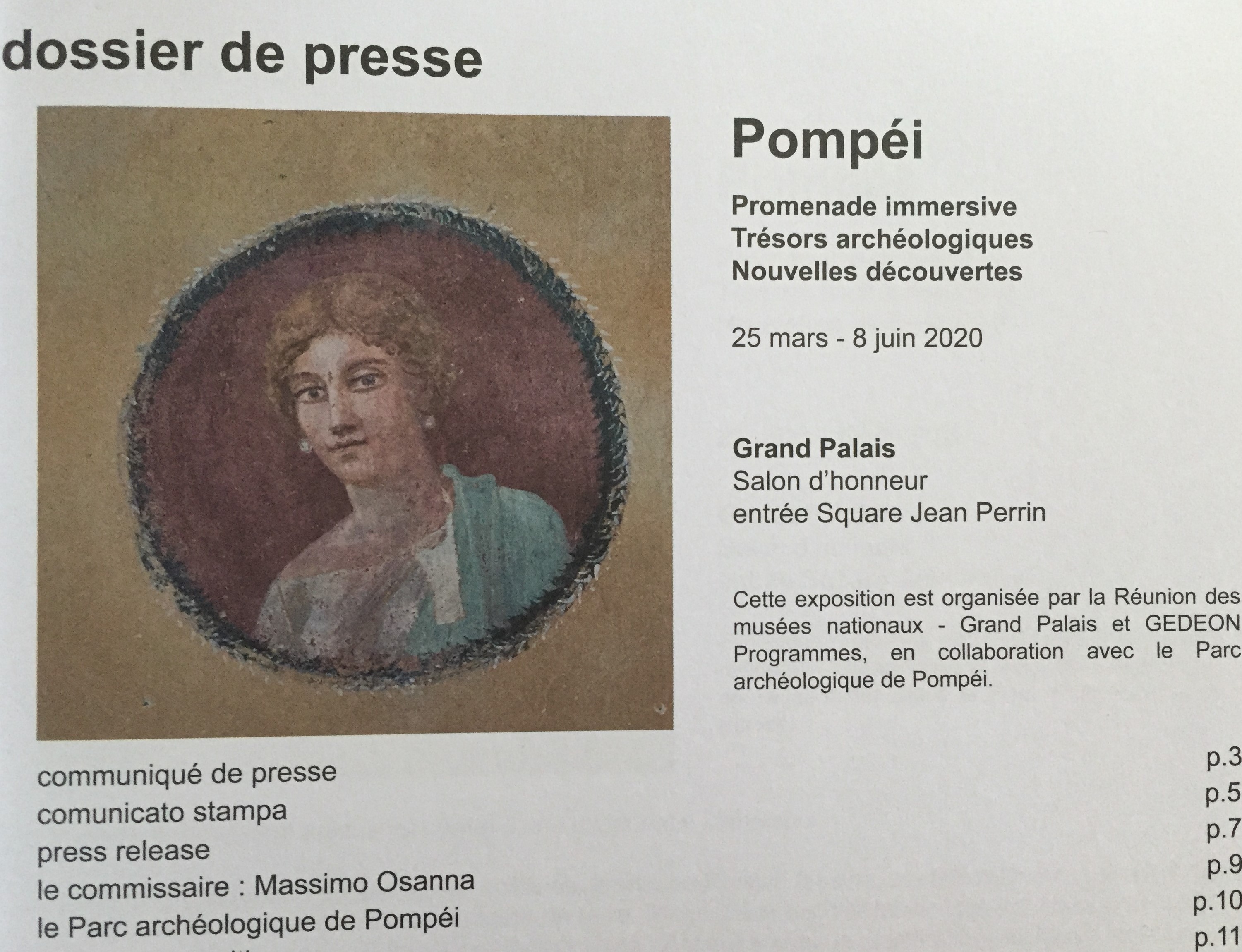 Pompéi – au Grand Palais -une promenade immersive- de nouvelles découvertes – 1er Juillet au 27 Septembre 2020