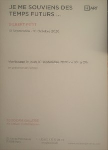 Teodora Galerie exposition Gilbert PETIT jusqu’au 10 Octobre 2020