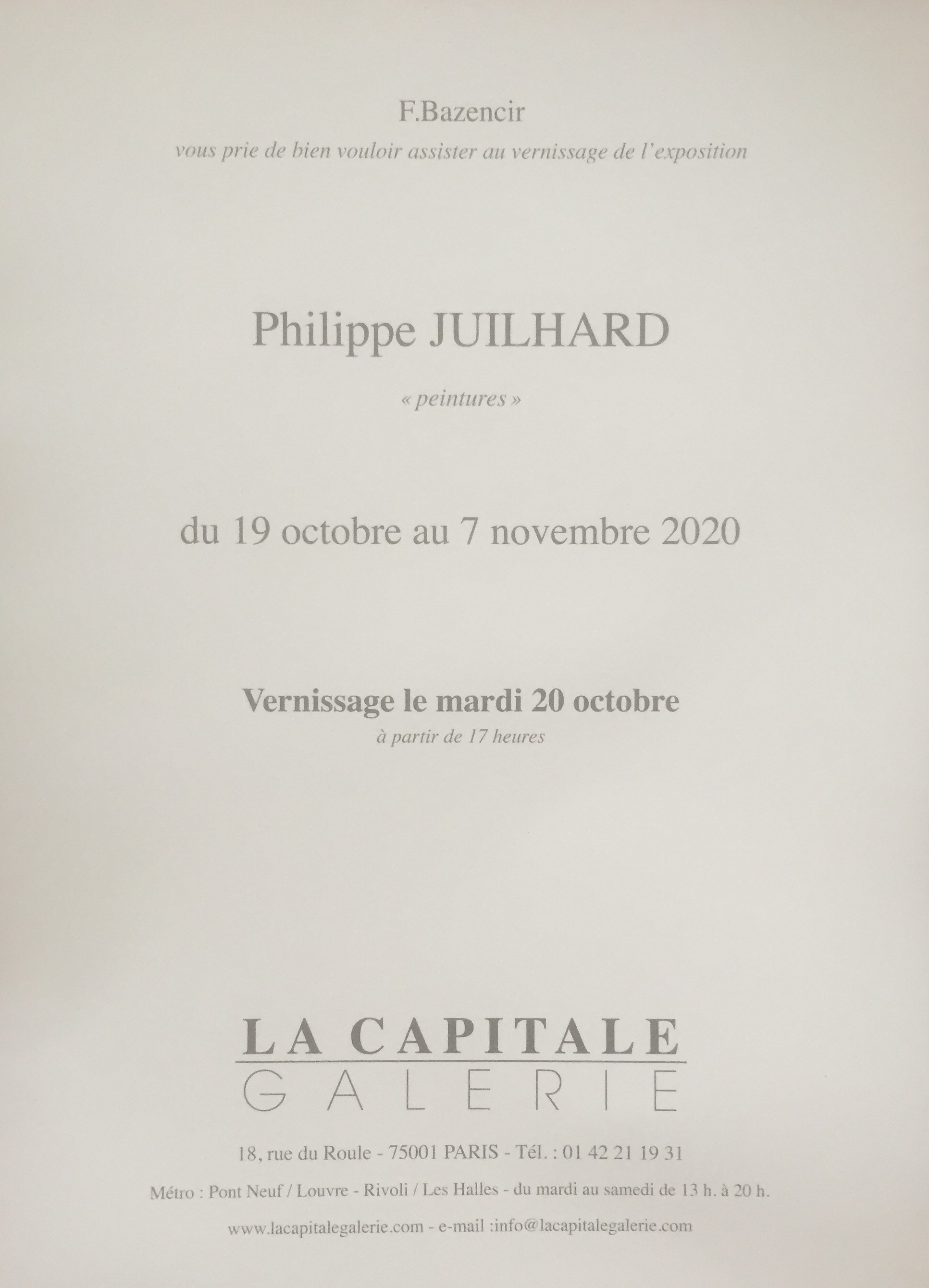 Galerie La Capitale- exposition Philippe Juilhard 19/10 au 7/11/20