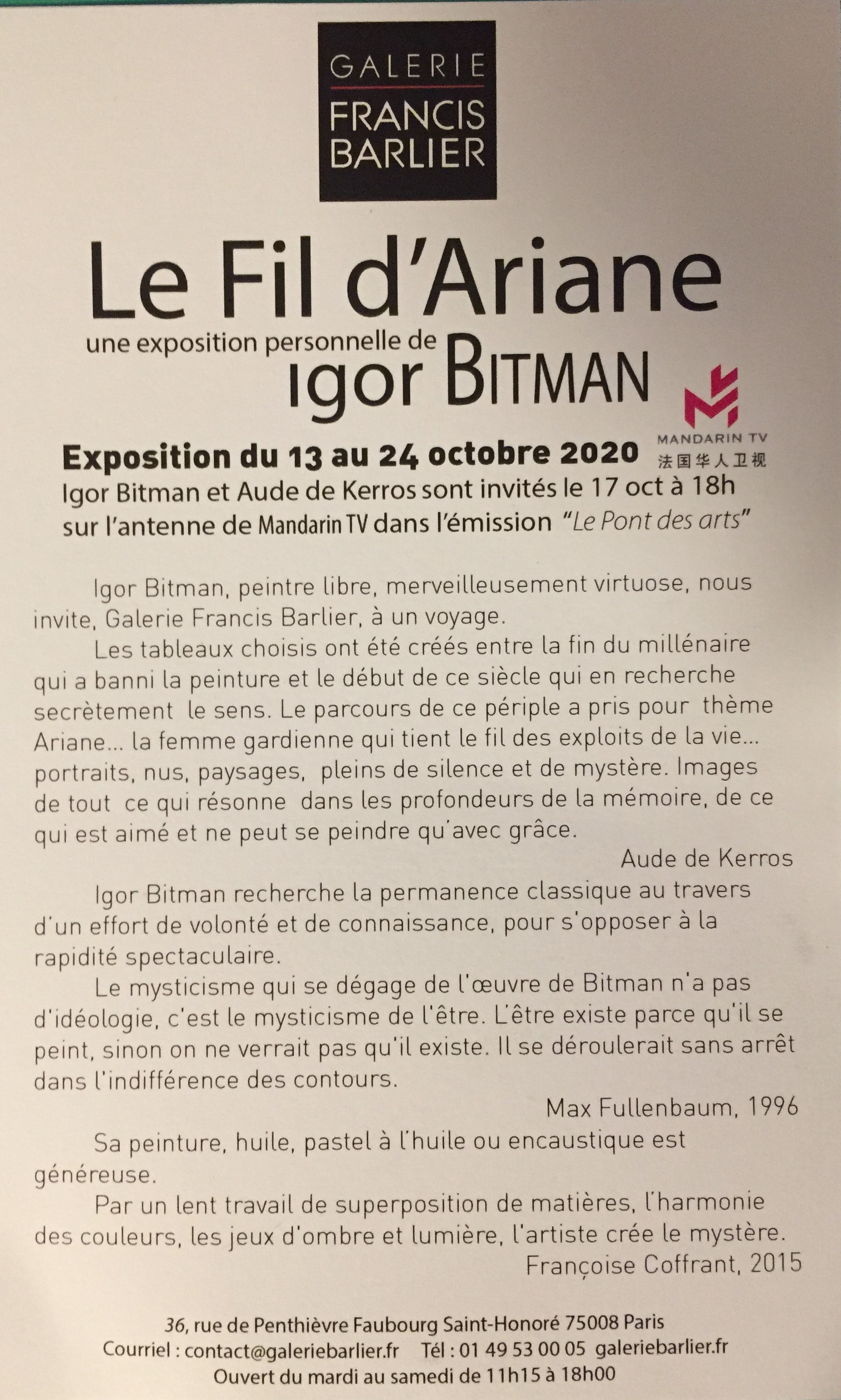 This entry was posted on octobre 22, 2020 at 7:46 and is filed under art contemporain, galeries. You can subscribe via RSS 2.0 feed to this post's comments. Both comments and pings are currently closed.