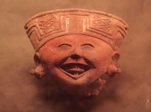 Ces statuettes en argile produites à Remojadas – masculines ou féminines – ces pièces se trouvent sous des monticules coniques d’une dizaine de mètres – vestiges des anciens centres de cérémonies -l’expression va du sourire timide au franc éclat de rire.