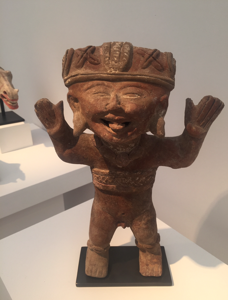 Ces statuettes en argile produites à Remojadas – masculines ou féminines – ces pièces se trouvent sous des monticules coniques d’une dizaine de mètres – vestiges des anciens centres de cérémonies -l’expression va du sourire timide au franc éclat de rire.