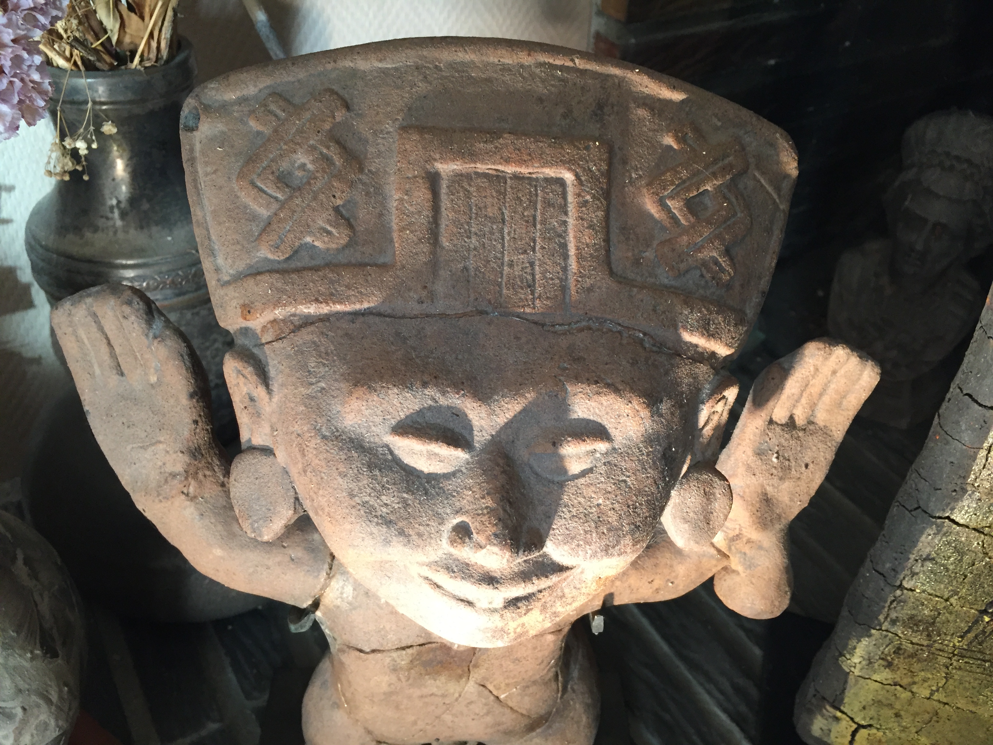 La couleur varie du café clair au marron foncé – ces statuettes participent aux rites et cérémonies dédiées à la déesse Tlazolteotl – figure de l’énergie vitale.