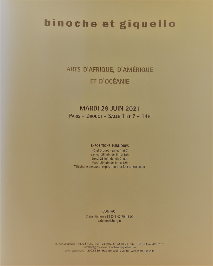 Vente Binoche et Giquello « Arts d’Afrique d’Amérique et d’Océanie « – Mardi 29 Juin 2021