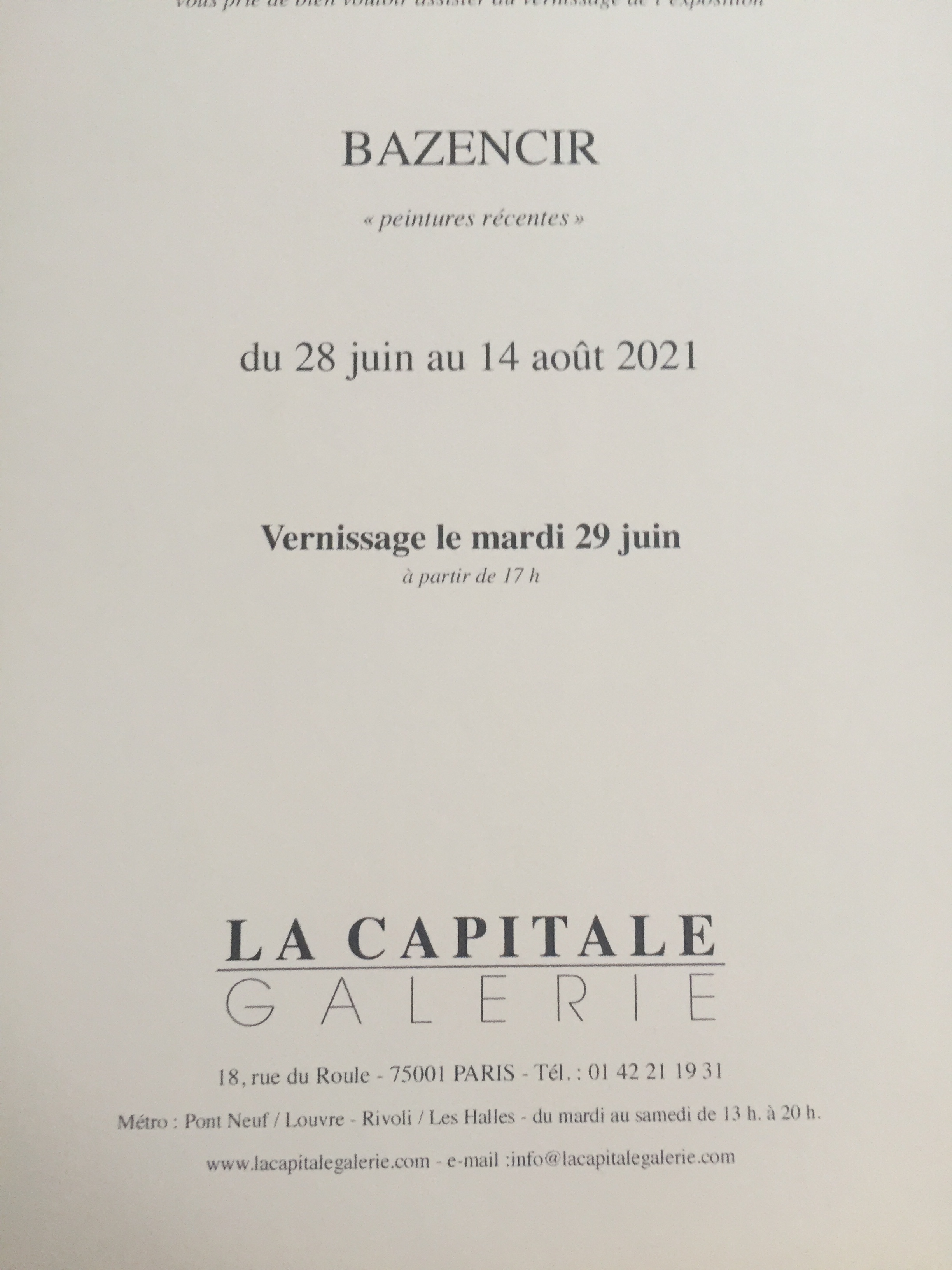 Galerie La Capitale exposition BAZENCIR 28 Juin au 14 Août 2021