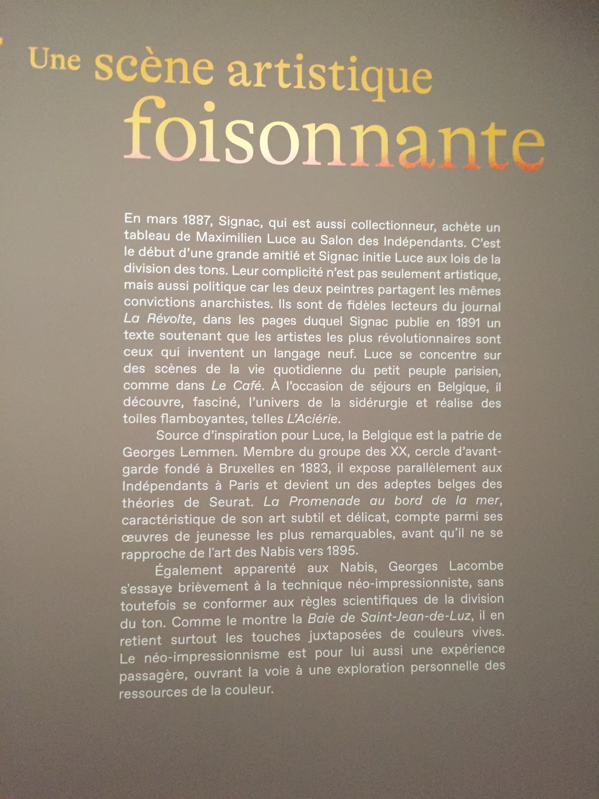 cette superbe et riche exposition terminée ( 70 œuvres de collections privées) une exposition qui fera date avec les prêts particuliers.