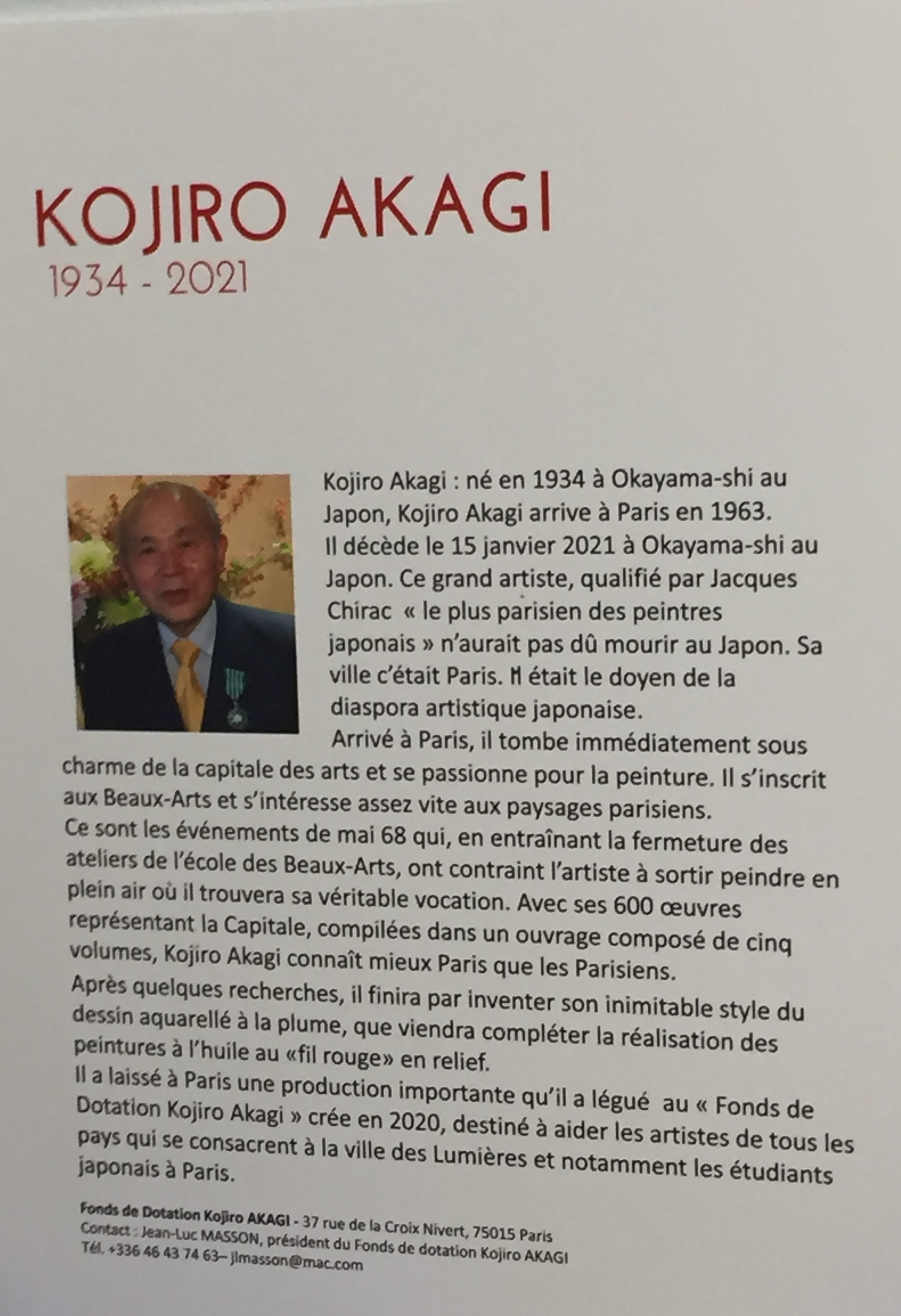 Avec cette exposition Kojiro Akagi toujours parmi nous -dans son Paris…