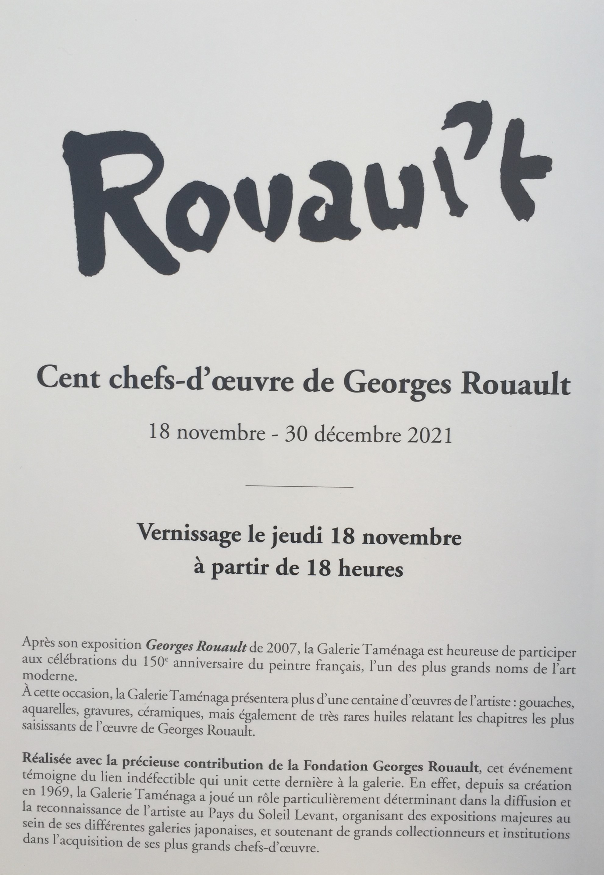 ROUAULT …. Cent chefs-d’œuvre Galerie TAMENAGA