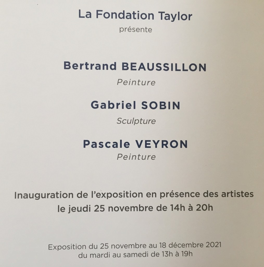 Fondation Taylor-Décembre 2021- exposition Bertrand Beausillon – Gabriel Sobin-Pascale Veyron-