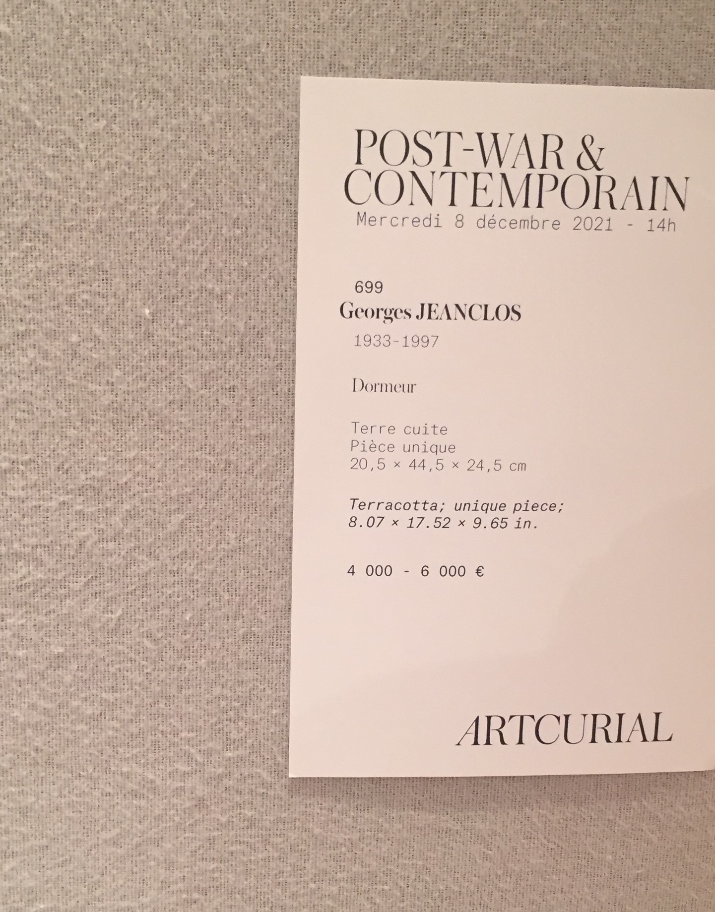 ARTCURIAL Ventes du 8 Décembre 2021 (vente Dora Vallier)