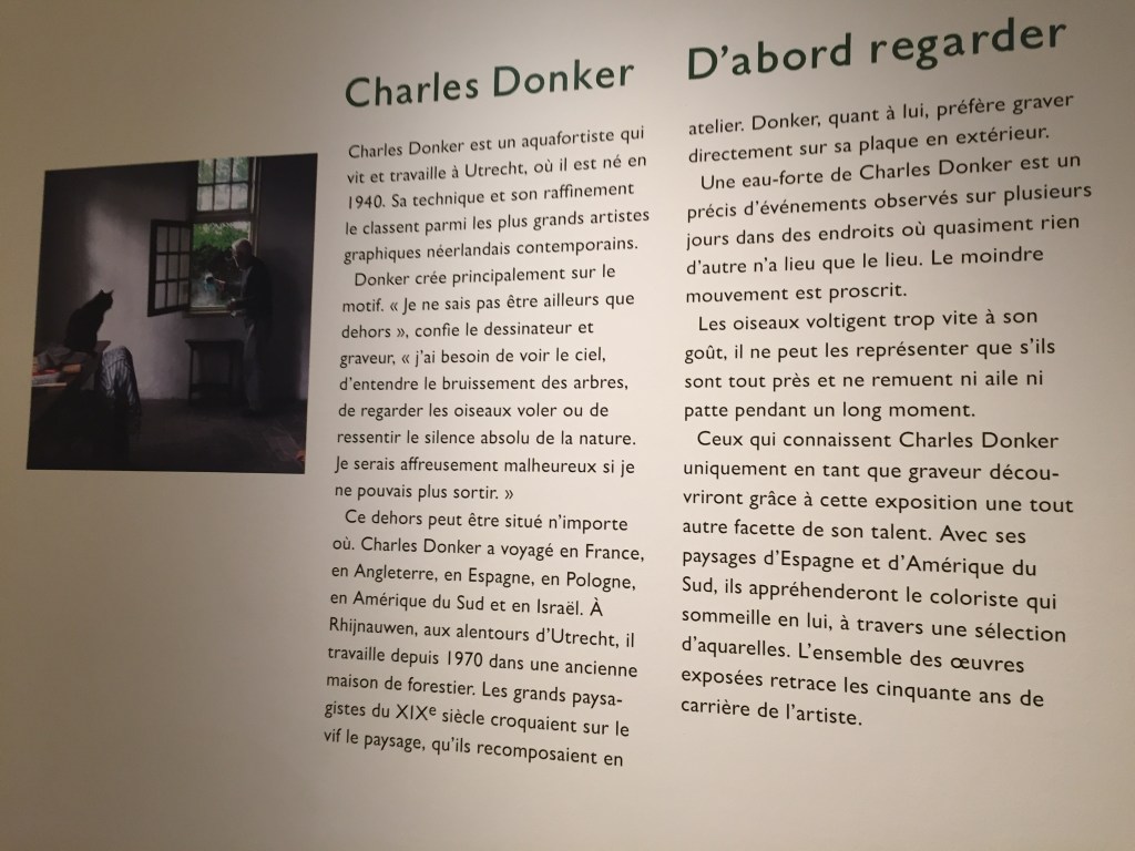 Deux expositions dans ce lieu – toutes les deux complémentaires -un artiste intimiste Charles Donker (expo au sous-sol) et la riche exposition « sur le motif- peindre en plein air-