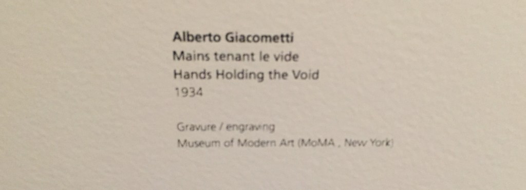 et surtout cette splendide sculpture d’Alberto Giacometti » mains tenant le vide » année 1934.