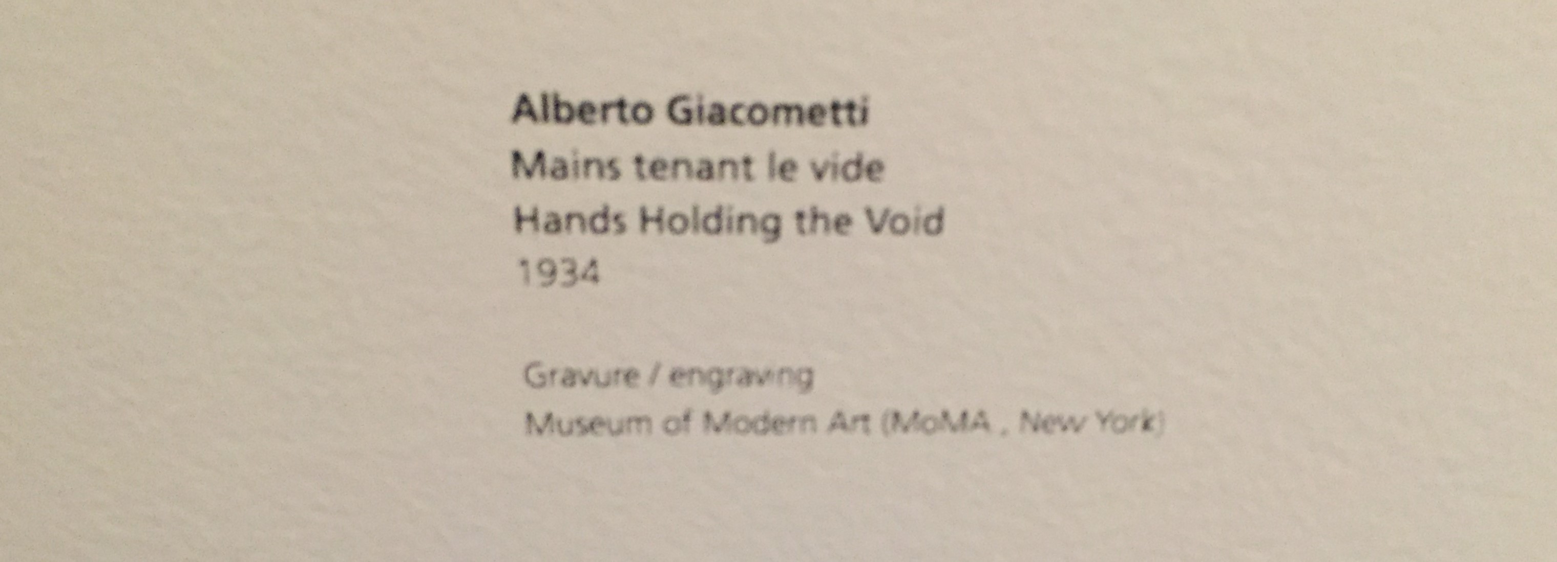 et surtout cette splendide sculpture d’Alberto Giacometti » mains tenant le vide » année 1934.