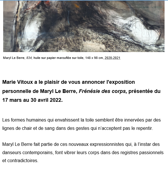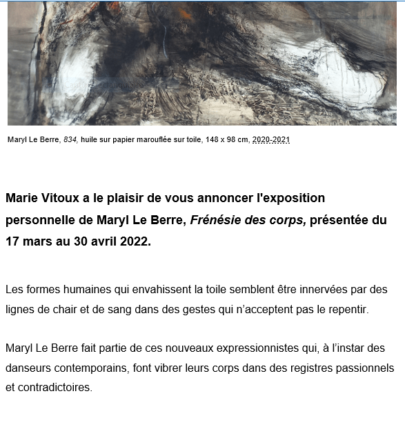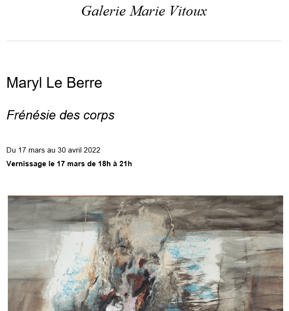 Galerie Marie Vitoux exposition « Frénésie des corps » Maryl Le Berre – 17 Mars au 30 Avril 2022.
