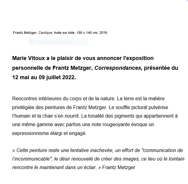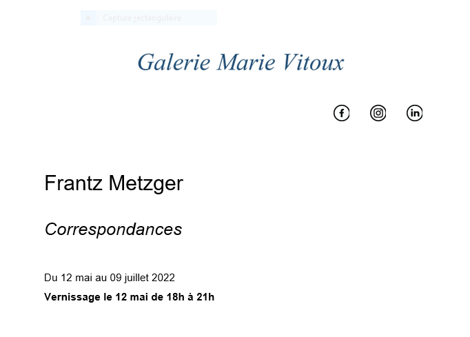 Galerie Marie Vitoux – exposition Frantz Metzger « Correspondances » à partir du 12 Mai 2022.