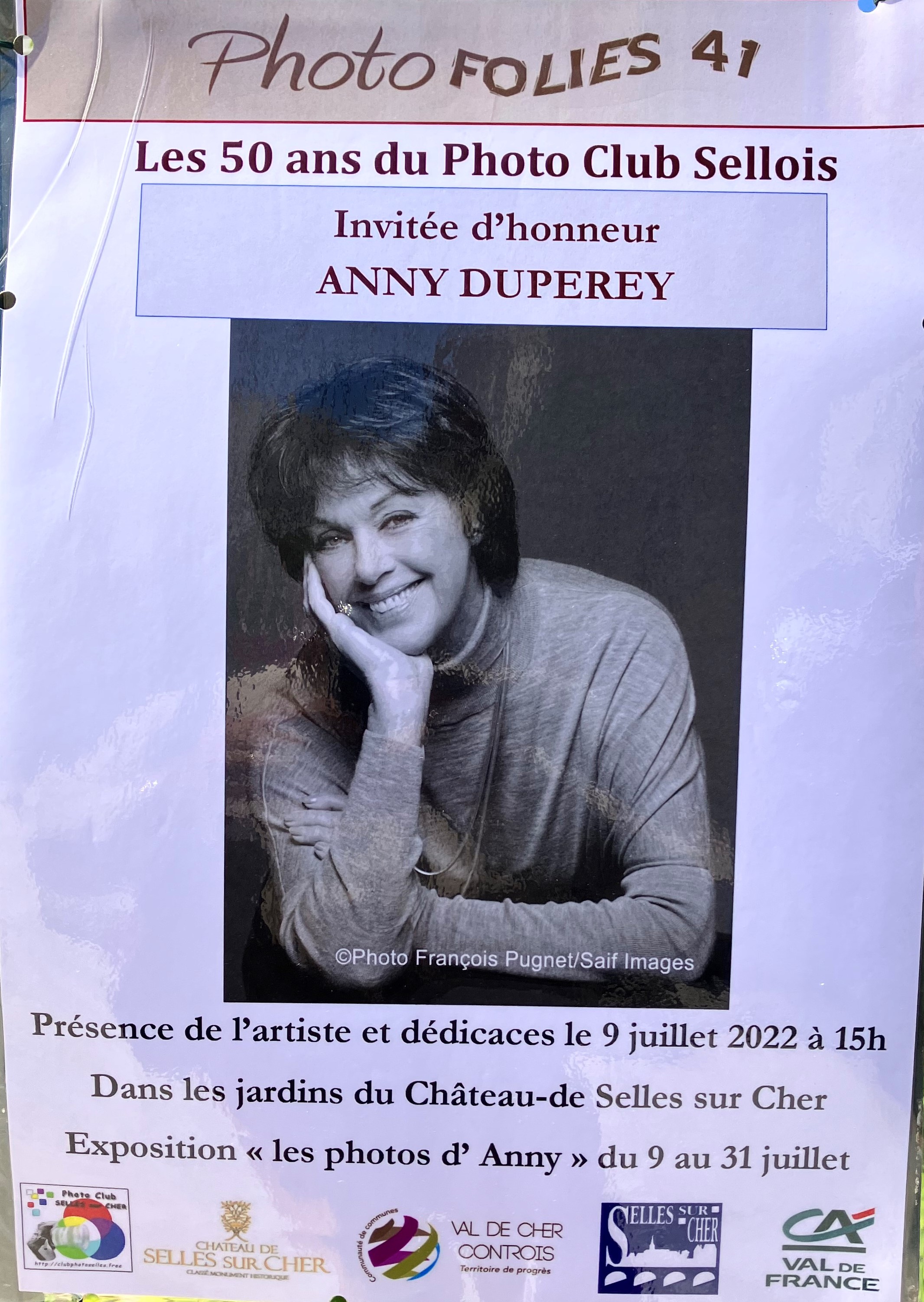 et du 9 Juillet au 31 Juillet – les 5O ans du Photo Club Sellois – avec Anny Duperey – dans le parc du château.