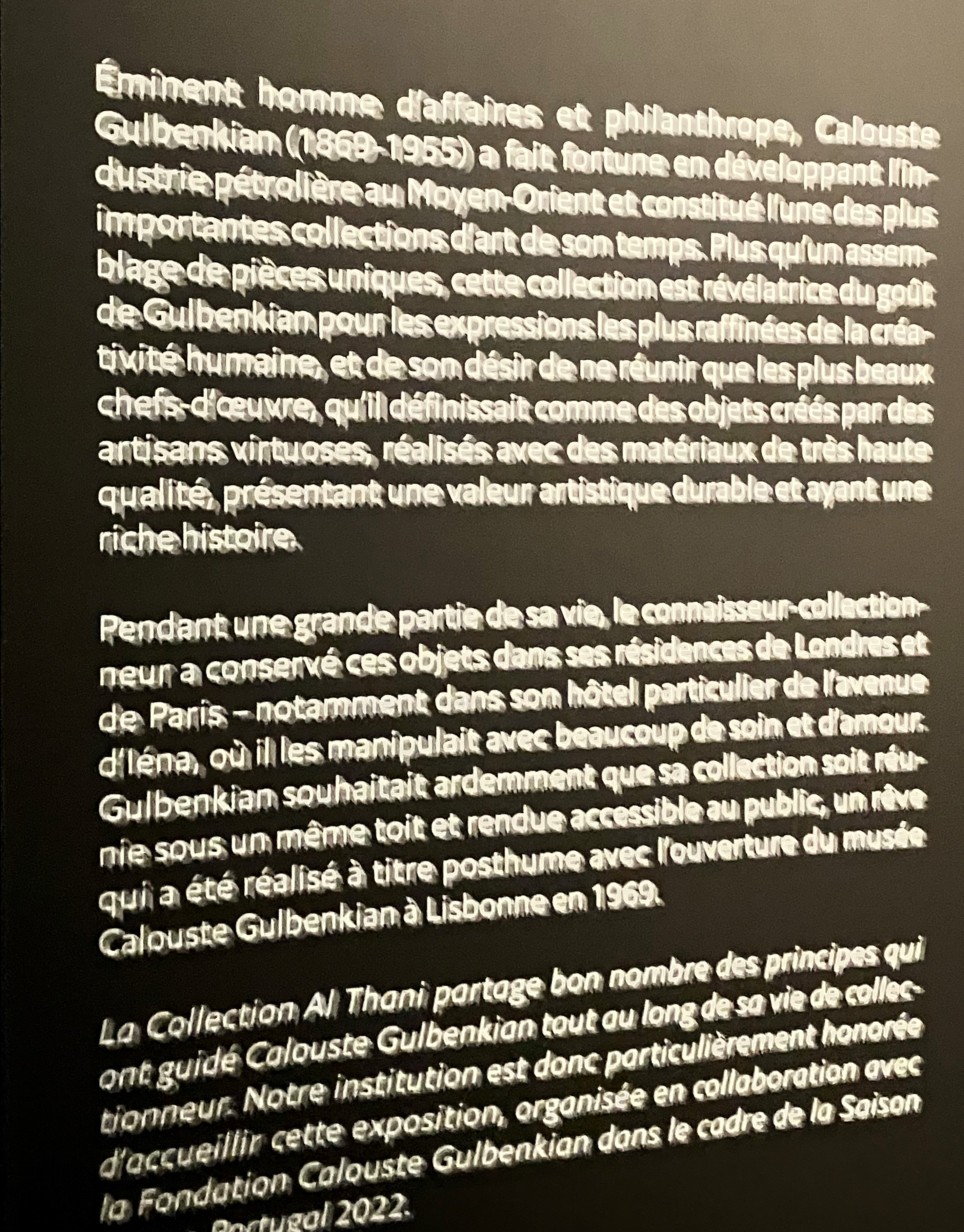 Une superbe et riche exposition – une superbe scénographie – jusqu’a fin Septembre prochain.