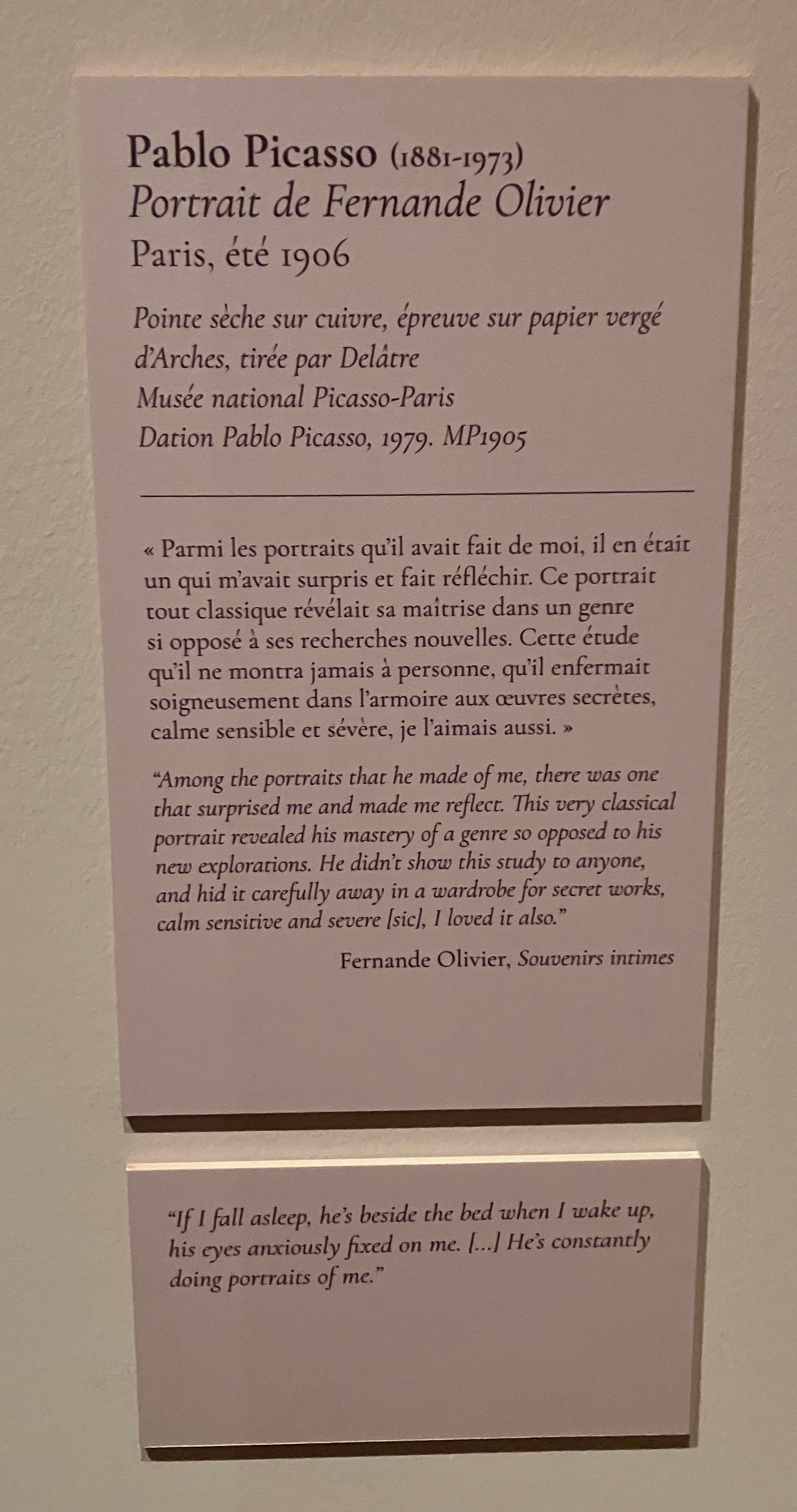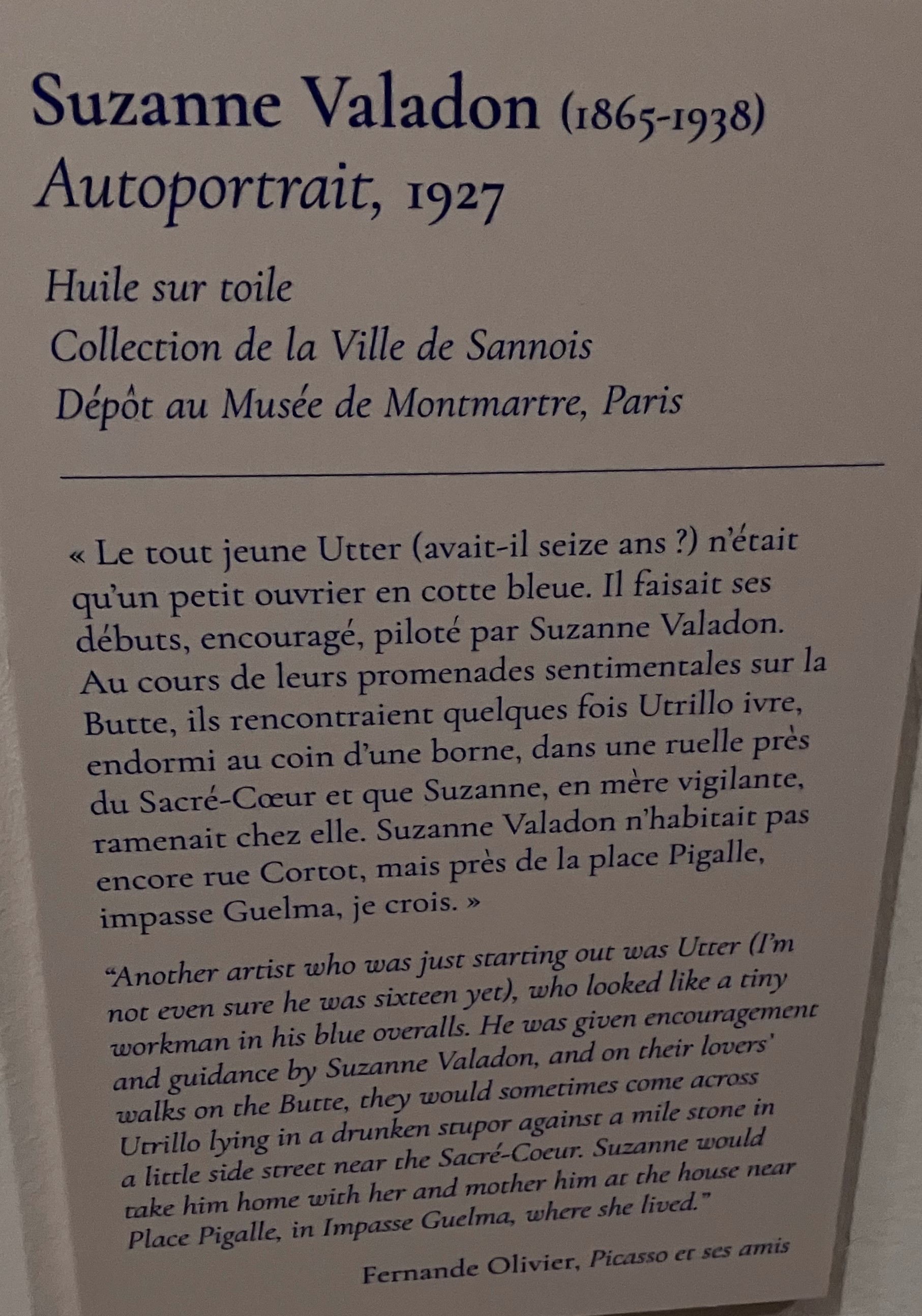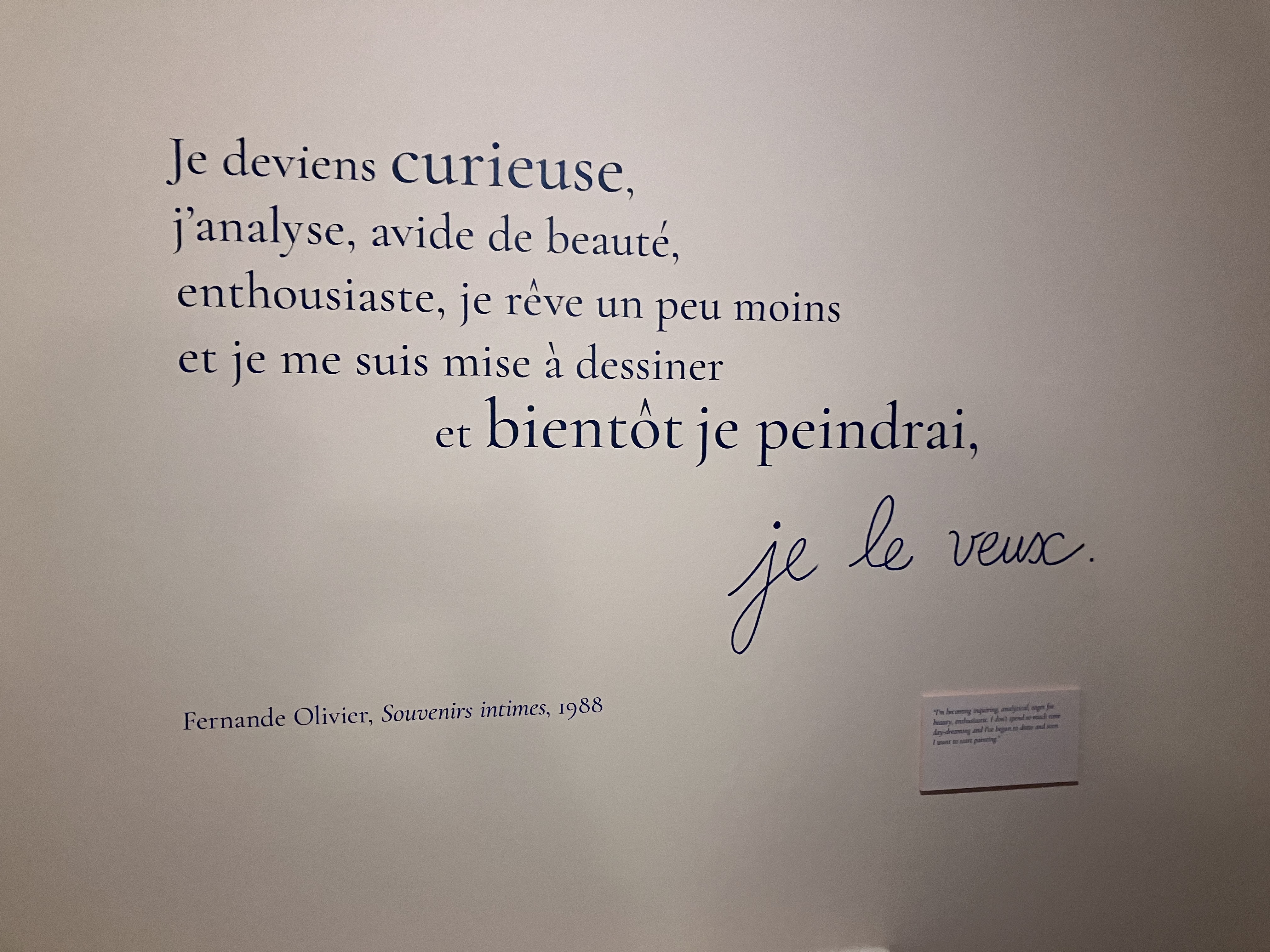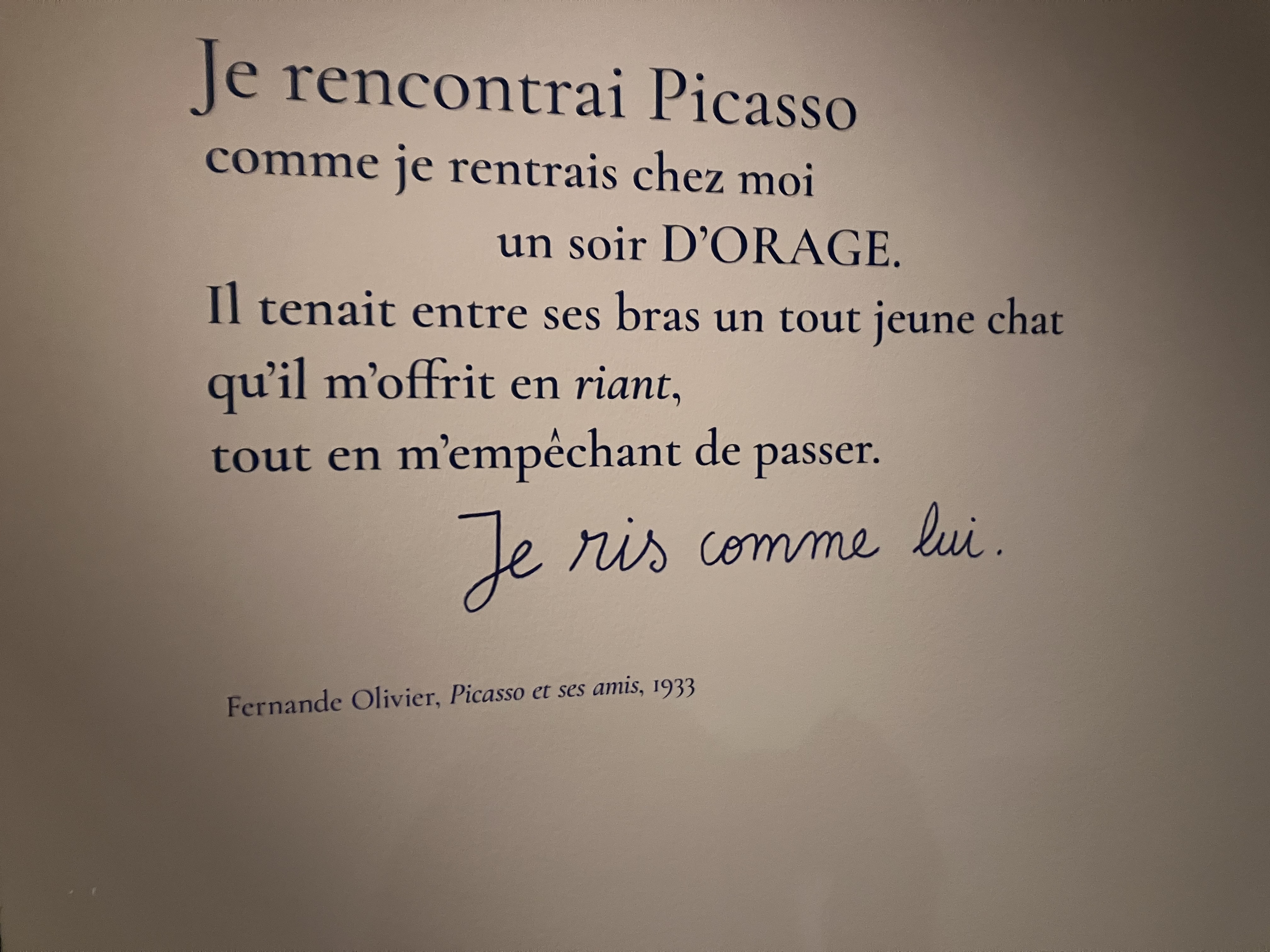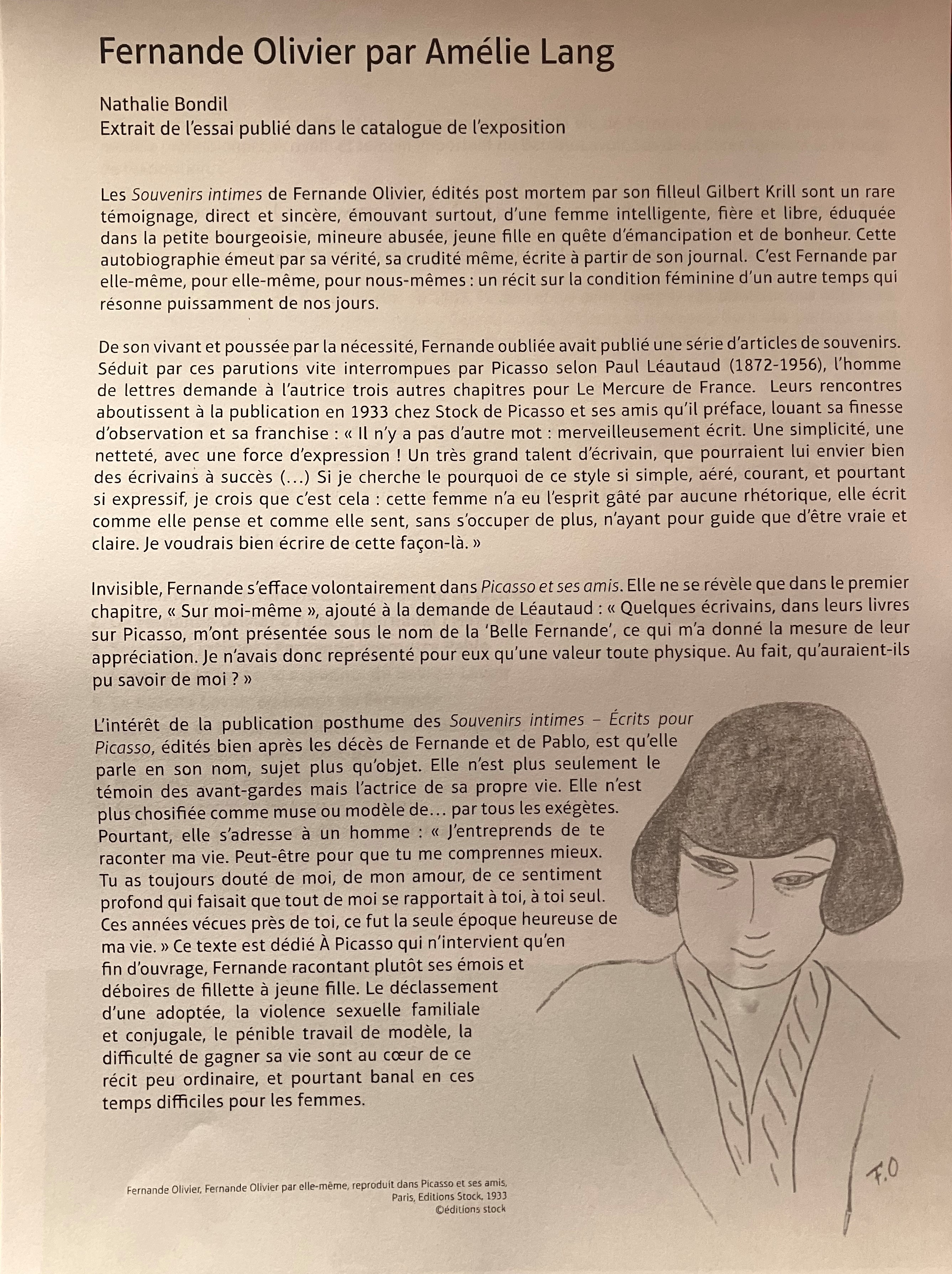 Cette superbe et riche exposition -avec ce livre déterminant dans l’élaboration de cette exposition ; l’univers du Bateau-Lavoir – la vie artistique des amis proches de Picasso-tout un univers décrit par Fernande Olivier.