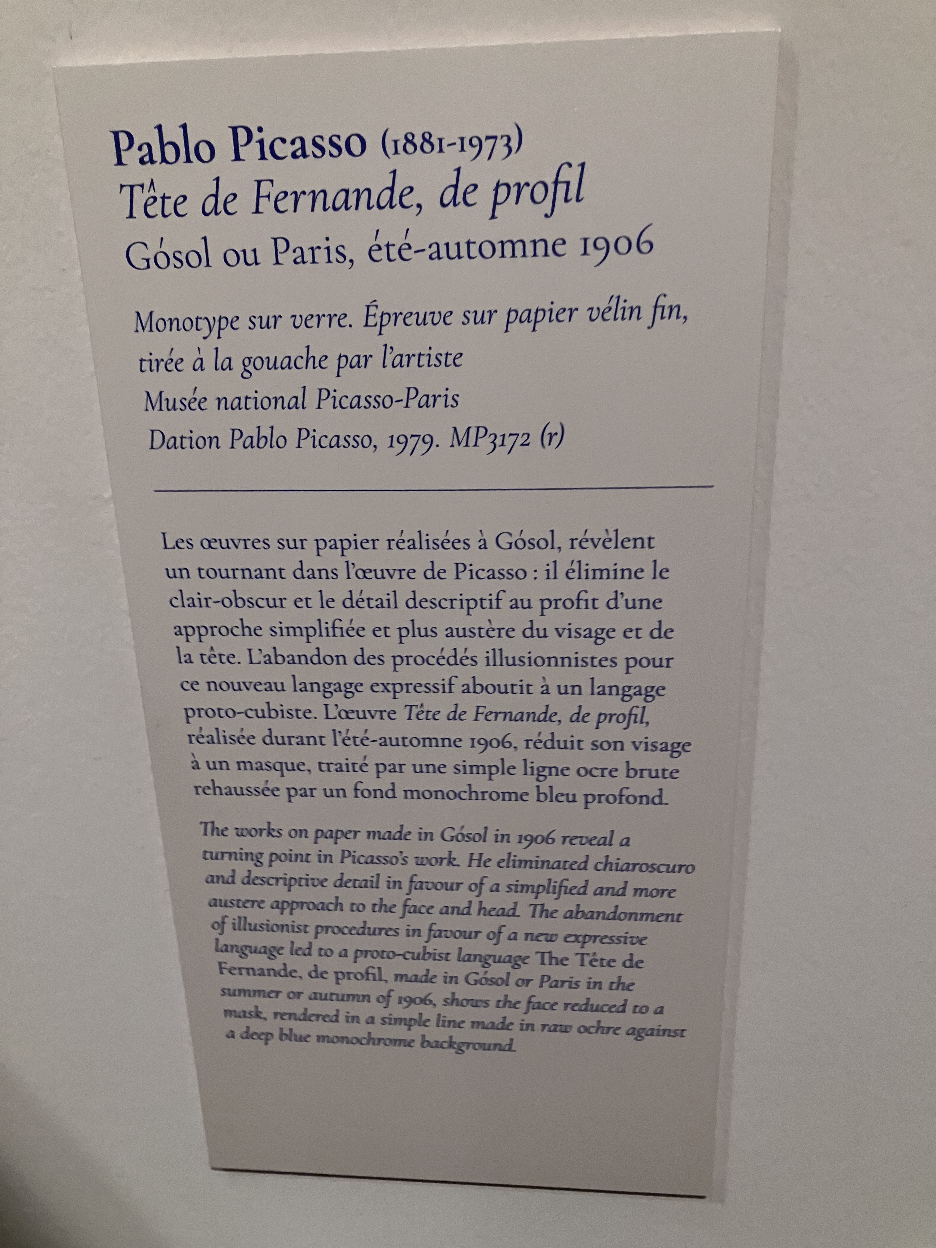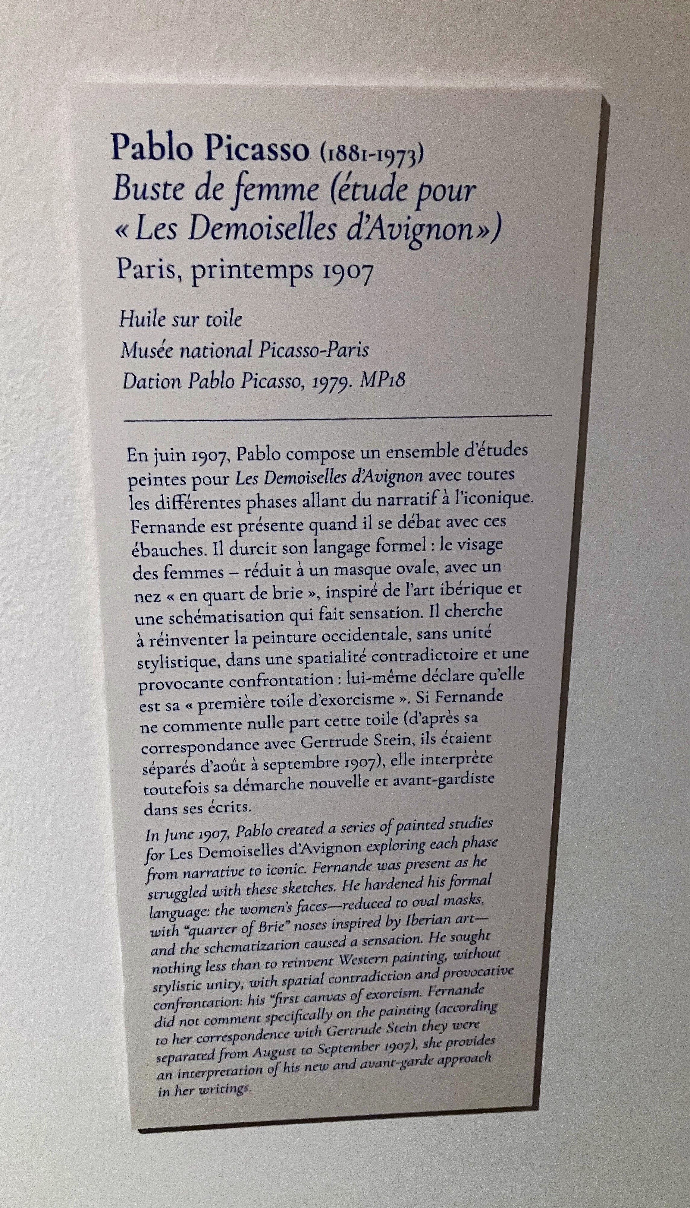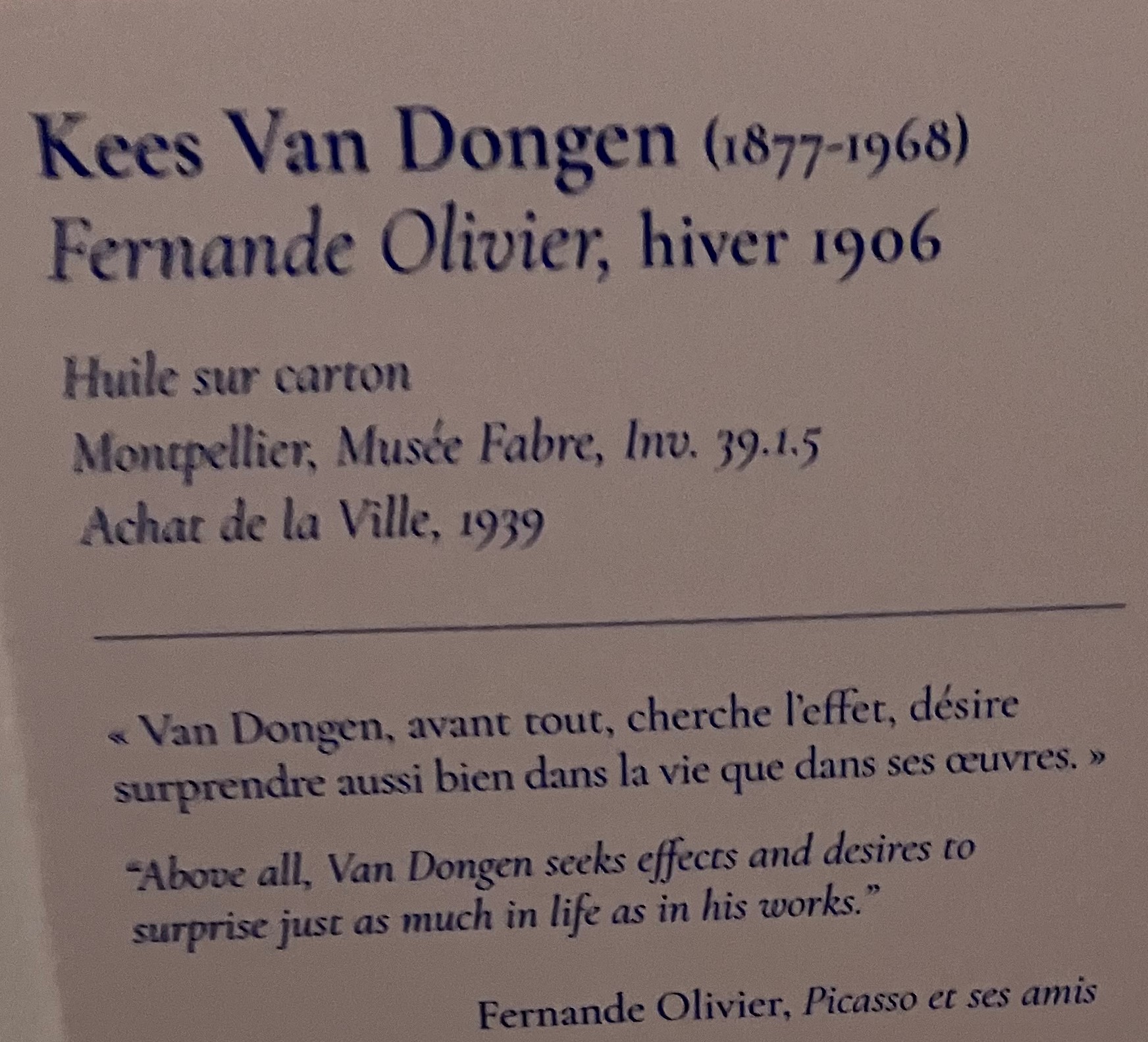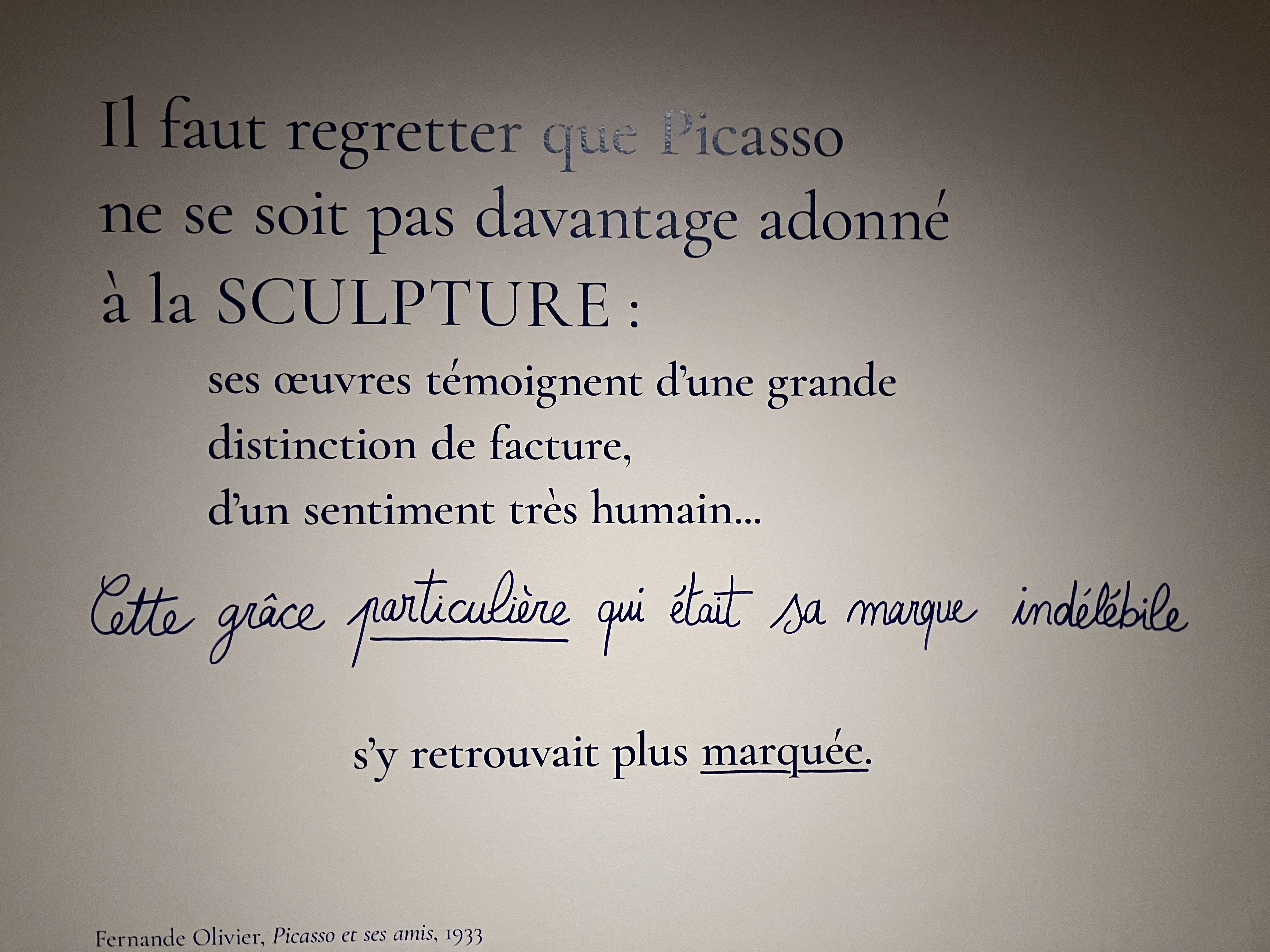 Cette superbe et riche exposition -avec ce livre déterminant dans l’élaboration de cette exposition ; l’univers du Bateau-Lavoir – la vie artistique des amis proches de Picasso-tout un univers décrit par Fernande Olivier.