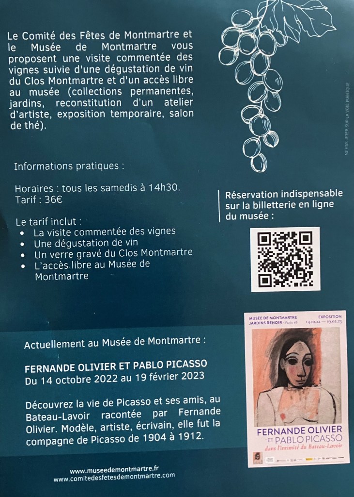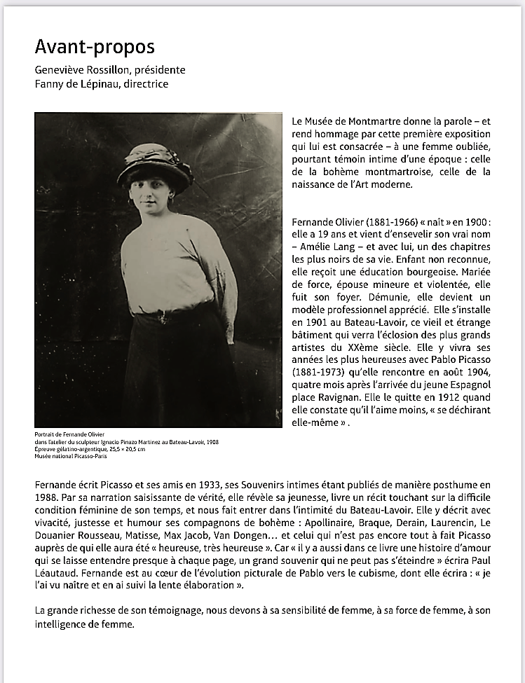 Musée de Montmartre -jardin Renoir- exposition : « Fernande Olivier et Pablo Picasso » 14/10/22 au 19/02/23.