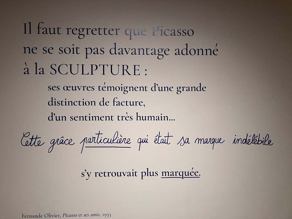 Des sculptures étonnantes de Picasso. Tout un voyage dans le monde artistique de l’époque ; Van Dongen André Salmon – Marie Laurencin- Rousseau- André Derain- Paul- Poiret- Matisse -Ambroise Vollard-le marchand de tableaux : Clovis Sagot – Le lapin Agile.