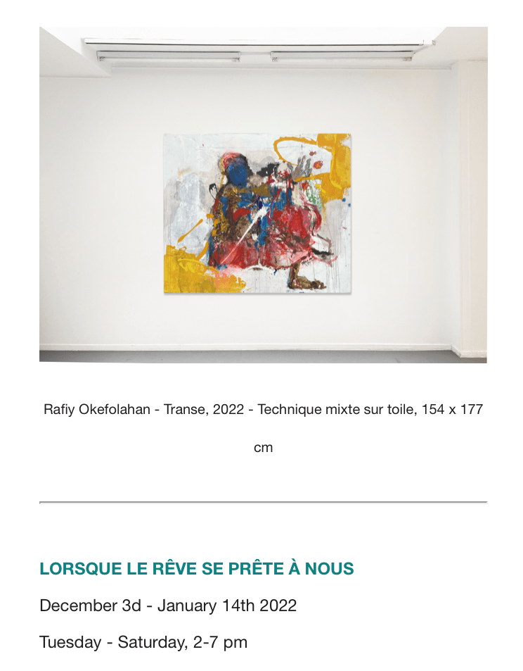 This entry was posted on décembre 2, 2022 at 7:43 and is filed under art contemporain, galeries. You can subscribe via RSS 2.0 feed to this post's comments. Both comments and pings are currently closed.