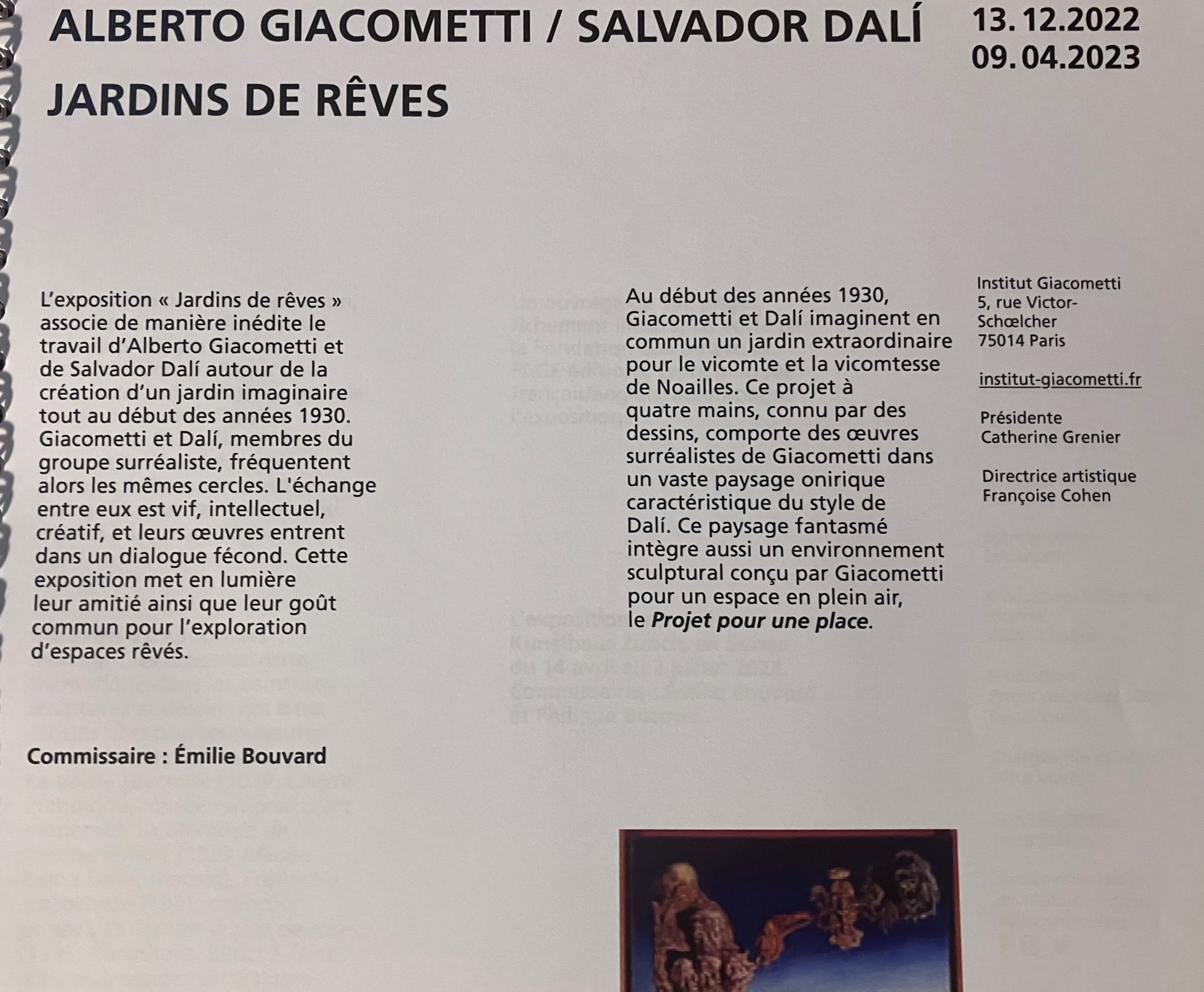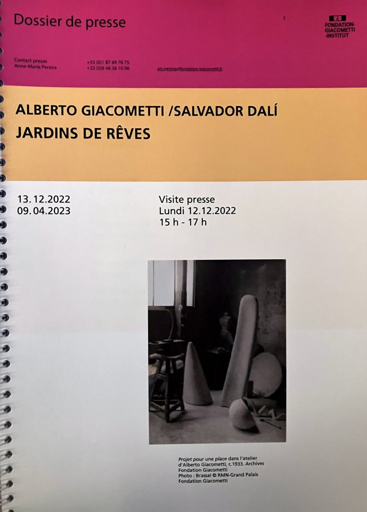 Fondation GIACOMETTI Institut « Jardins de rêves » Alberto Giacometti/ Salvador Dali. à partir du 13 Novembre 2022.