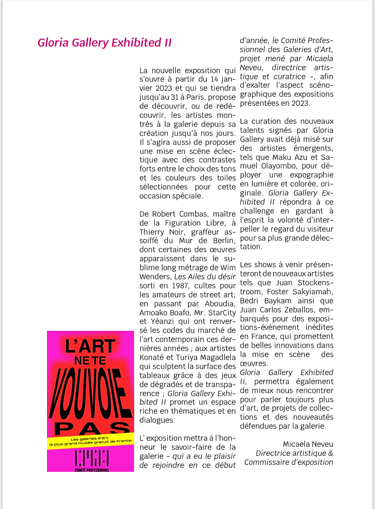 Gloria Gallery « Exhibited II » à partir du 14 Janvier 2023.