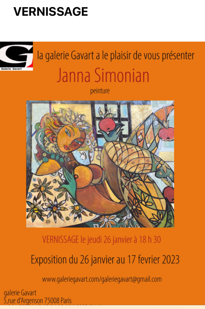 Galerie Gavart exposition Janna Simonian -26 Janvier au 17 Février 2023.