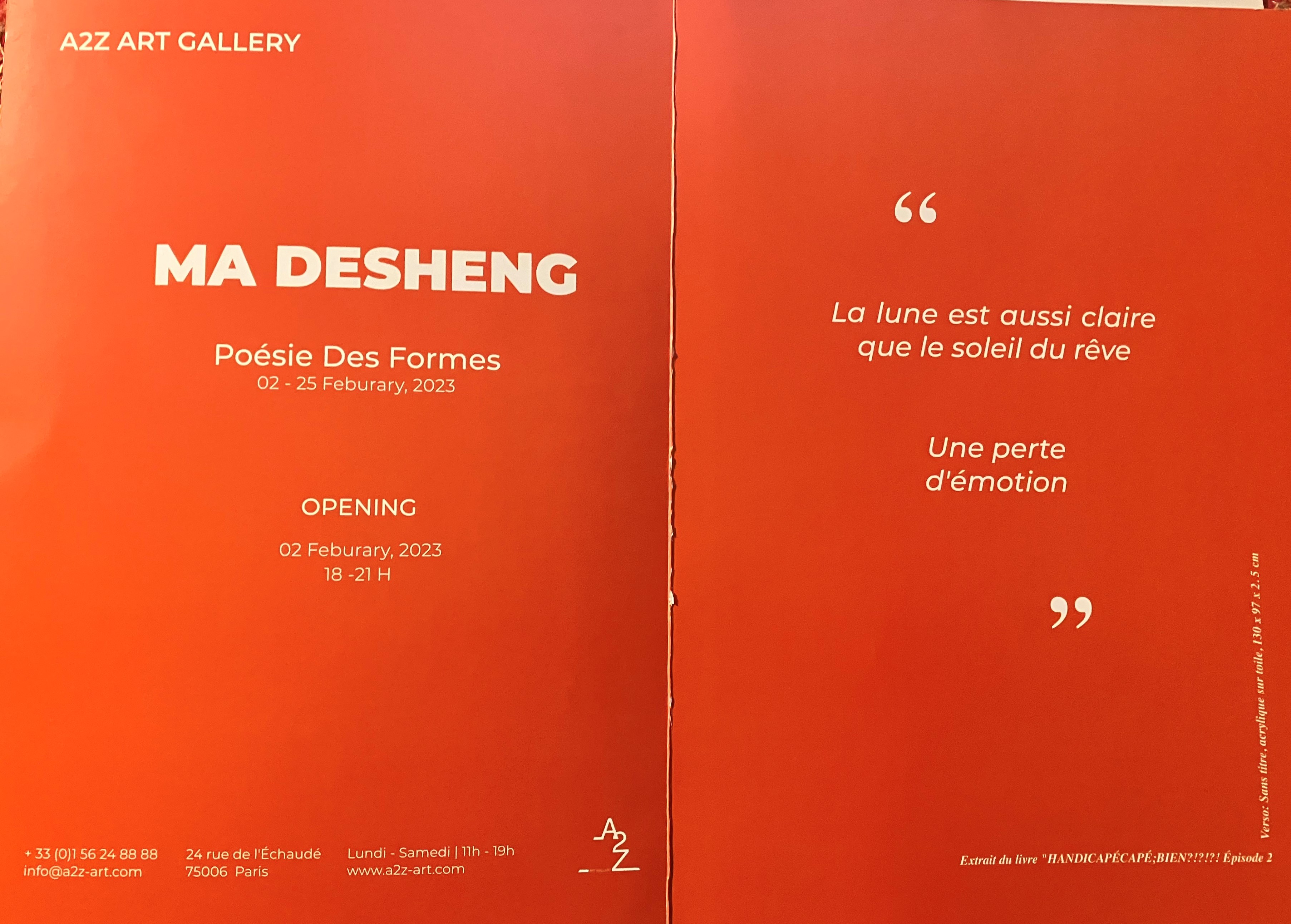 A2Z Art Gallery MA DESHENG « Poésie des formes » jusqu’au 25 Février 2023.